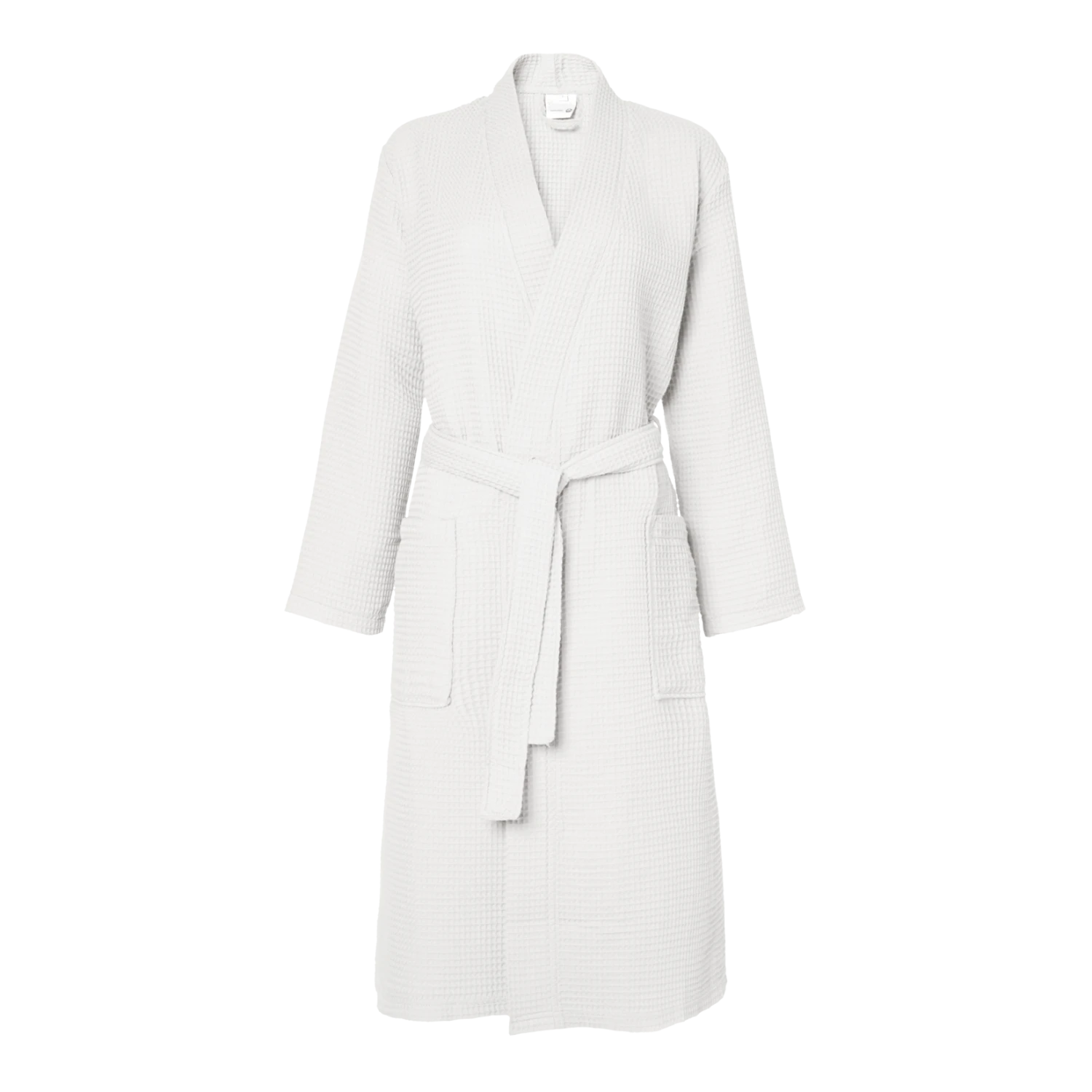 De Biarritz badjas in white is een uni badjas met een wafel structuur. De lange badjas heeft aan de beide zijden grote insteek zakken en een lusje in de kraag zodat je je badjas handig kunt ophangen.