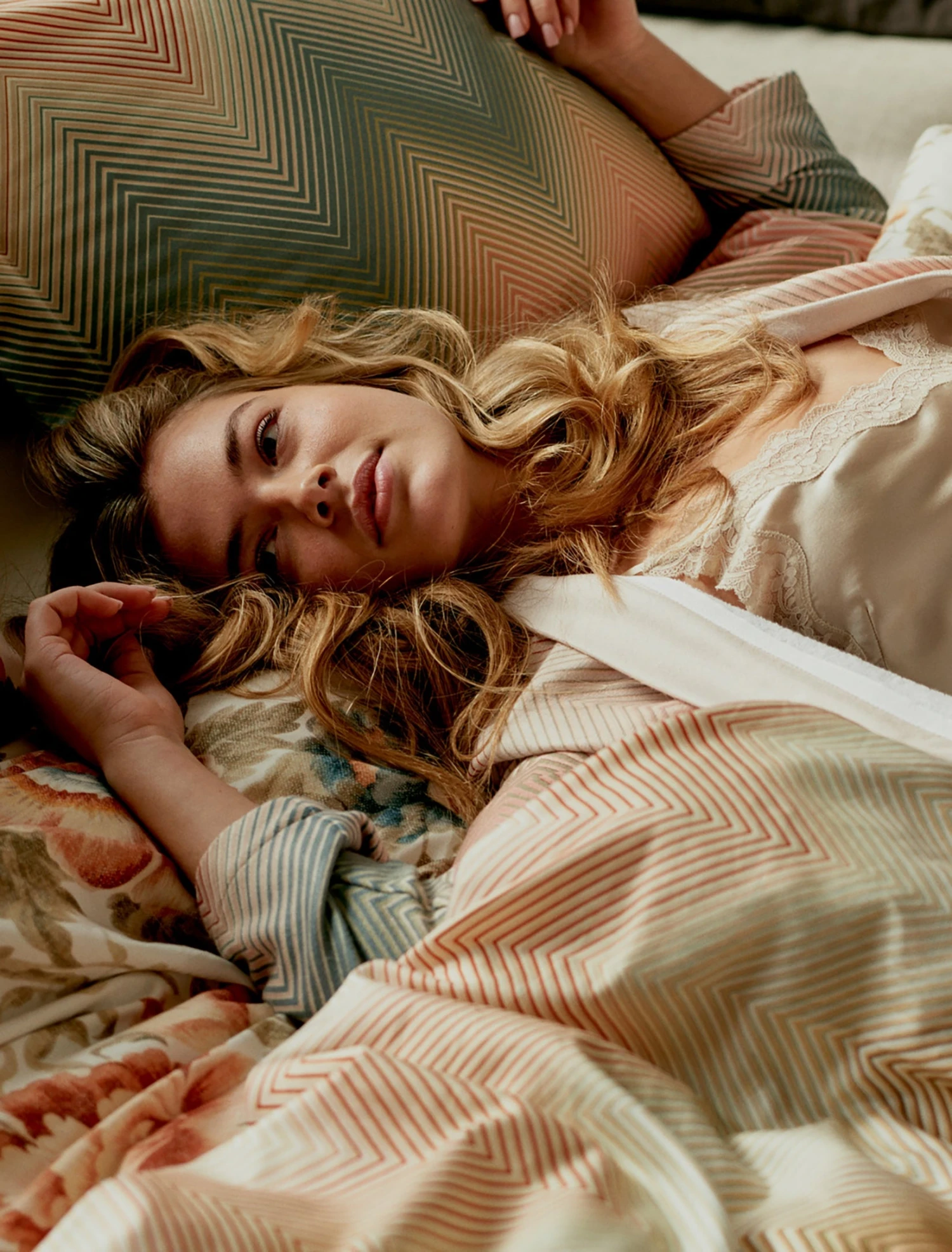 [[viola]]De mooie Bella viola badjas heeft zigzaglijnen in verschillende tinten blauw, paars, roze en oranje. Deze badjas van Vandyck is afgewerkt met grote steekzakken, brede licht lila revers en wordt gesloten met een ceintuur. Doordat de badjas gemaakt is met een combinatie van bamboe, katoen en polyester, voelt het niet alleen licht aan, maar ademt het ook. Maak de look compleet met het bijpassende dekbedovertrek Ziggy viola.[[viola END]][[cream tan]]De mooie Bella cream tan badjas heeft zigzaglijnen in verschillende tinten groen, oranje en rood. Deze badjas van Vandyck is afgewerkt met grote steekzakken, brede off white revers en wordt gesloten met een ceintuur. Doordat de badjas gemaakt is met een combinatie van bamboe, katoen en polyester, voelt het niet alleen licht aan, maar ademt het ook. Maak de look compleet met het bijpassende dekbedovertrek Ziggy cream tan.[[cream tan END]][[pearl blue]] De mooie Bella pearl blue badjas heeft zigzag lijnen in verschillende tinten bruin, groen blauw en rood. Als je er wat langer naar kijkt, dan lijken de lijnen wazig terwijl het strakgetrokken lijnen zijn. Deze badjas van Vandyck is afgewerkt met grote steekzakken, brede licht blauwe revers en wordt gesloten met een ceintuur. Doordat de badjas gemaakt is met een combinatie van bamboe, katoen en polyester, voelt het niet alleen licht aan, maar ademt het ook. Maak de look compleet met het bijpassende dekbedovertrek Ziggy. [[pearl blue END]][[multi]]De mooie Bella multi badjas heeft zigzag lijnen in verschillende tinten bruin, blauw, groen, terracotta en rood. Als je er wat langer naar kijkt, dan lijken de lijnen wazig terwijl het strakgetrokken lijnen zijn. Deze badjas van Vandyck is afgewerkt met grote steekzakken, brede groene revers en wordt gesloten met een ceintuur. Doordat de badjas gemaakt is met een combinatie van bamboe, katoen en polyester, voelt het niet alleen licht aan, maar ademt het ook. Maak de look compleet met het bijpassende dekbedovertrek Ziggy.[[multi END]][[thyme]]Bella badjas thyme is een lange badjas met hele fijne zigzaglijnen in groen, grijs, bruin, wit en beige. De badjas heeft grote insteekzakken, brede effen groene revers en wordt gesloten met een ceintuur. De Bella badjas thyme van Vandyck heeft door de fijne lijnen en lichte kleuren een subtiele elegantie. Het is gemaakt van 45% bamboe, 20% katoen en 35% polyester. Hierdoor heeft de badjas niet alleen een goed absorptievermogen, het is ook lekker licht om te dragen. De Bella badjas matcht goed met het dekbedovertrek Ziggy.[[thyme END]][[mineral blue]]Bella badjas mineral blue is een lange badjas met hele fijne zigzaglijnen in blauw, grijs, bruin, wit en beige. De badjas heeft grote insteekzakken, brede blauwe groene revers en wordt gesloten met een ceintuur. De Bella badjas mineral blue van Vandyck heeft door de fijne lijnen en lichte kleuren een subtiele elegantie. Het is gemaakt van 45% bamboe, 20% katoen en 35% polyester. Hierdoor heeft de badjas niet alleen een goed absorptievermogen, het is ook lekker licht om te dragen. De Bella badjas matcht goed met het dekbedovertrek Ziggy.[[mineral blue END]]