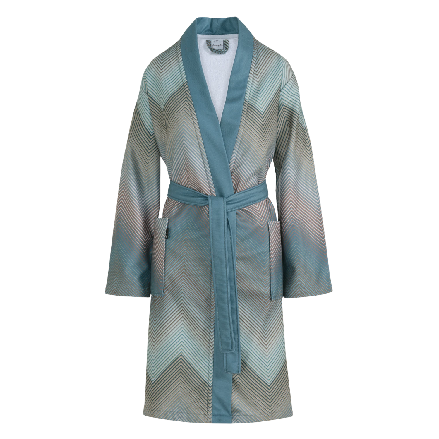 [[viola]]De mooie Bella viola badjas heeft zigzaglijnen in verschillende tinten blauw, paars, roze en oranje. Deze badjas van Vandyck is afgewerkt met grote steekzakken, brede licht lila revers en wordt gesloten met een ceintuur. Doordat de badjas gemaakt is met een combinatie van bamboe, katoen en polyester, voelt het niet alleen licht aan, maar ademt het ook. Maak de look compleet met het bijpassende dekbedovertrek Ziggy viola.[[viola END]][[cream tan]]De mooie Bella cream tan badjas heeft zigzaglijnen in verschillende tinten groen, oranje en rood. Deze badjas van Vandyck is afgewerkt met grote steekzakken, brede off white revers en wordt gesloten met een ceintuur. Doordat de badjas gemaakt is met een combinatie van bamboe, katoen en polyester, voelt het niet alleen licht aan, maar ademt het ook. Maak de look compleet met het bijpassende dekbedovertrek Ziggy cream tan.[[cream tan END]][[pearl blue]] De mooie Bella pearl blue badjas heeft zigzag lijnen in verschillende tinten bruin, groen blauw en rood. Als je er wat langer naar kijkt, dan lijken de lijnen wazig terwijl het strakgetrokken lijnen zijn. Deze badjas van Vandyck is afgewerkt met grote steekzakken, brede licht blauwe revers en wordt gesloten met een ceintuur. Doordat de badjas gemaakt is met een combinatie van bamboe, katoen en polyester, voelt het niet alleen licht aan, maar ademt het ook. Maak de look compleet met het bijpassende dekbedovertrek Ziggy. [[pearl blue END]][[multi]]De mooie Bella multi badjas heeft zigzag lijnen in verschillende tinten bruin, blauw, groen, terracotta en rood. Als je er wat langer naar kijkt, dan lijken de lijnen wazig terwijl het strakgetrokken lijnen zijn. Deze badjas van Vandyck is afgewerkt met grote steekzakken, brede groene revers en wordt gesloten met een ceintuur. Doordat de badjas gemaakt is met een combinatie van bamboe, katoen en polyester, voelt het niet alleen licht aan, maar ademt het ook. Maak de look compleet met het bijpassende dekbedovertrek Ziggy.[[multi END]][[thyme]]Bella badjas thyme is een lange badjas met  hele fijne zigzaglijnen in groen, grijs, bruin, wit en beige. De badjas heeft grote insteekzakken, brede effen groene revers en wordt gesloten met een ceintuur. De Bella badjas thyme van Vandyck heeft door  de fijne lijnen en lichte kleuren een subtiele elegantie. Het is gemaakt van 45% bamboe, 20% katoen en 35% polyester. Hierdoor heeft de badjas niet alleen een goed absorptievermogen, het is ook lekker licht om te dragen. De Bella badjas matcht goed met het dekbedovertrek Ziggy.[[thyme END]][[mineral blue]]Bella badjas mineral blue is een lange badjas met  hele fijne zigzaglijnen in blauw, grijs, bruin, wit en beige. De badjas heeft grote insteekzakken, brede blauwe groene revers en wordt gesloten met een ceintuur. De Bella badjas mineral blue van Vandyck heeft door  de fijne lijnen en lichte kleuren een subtiele elegantie. Het is gemaakt van 45% bamboe, 20% katoen en 35% polyester. Hierdoor heeft de badjas niet alleen een goed absorptievermogen, het is ook lekker licht om te dragen. De Bella badjas matcht goed met het dekbedovertrek Ziggy.[[mineral blue END]]