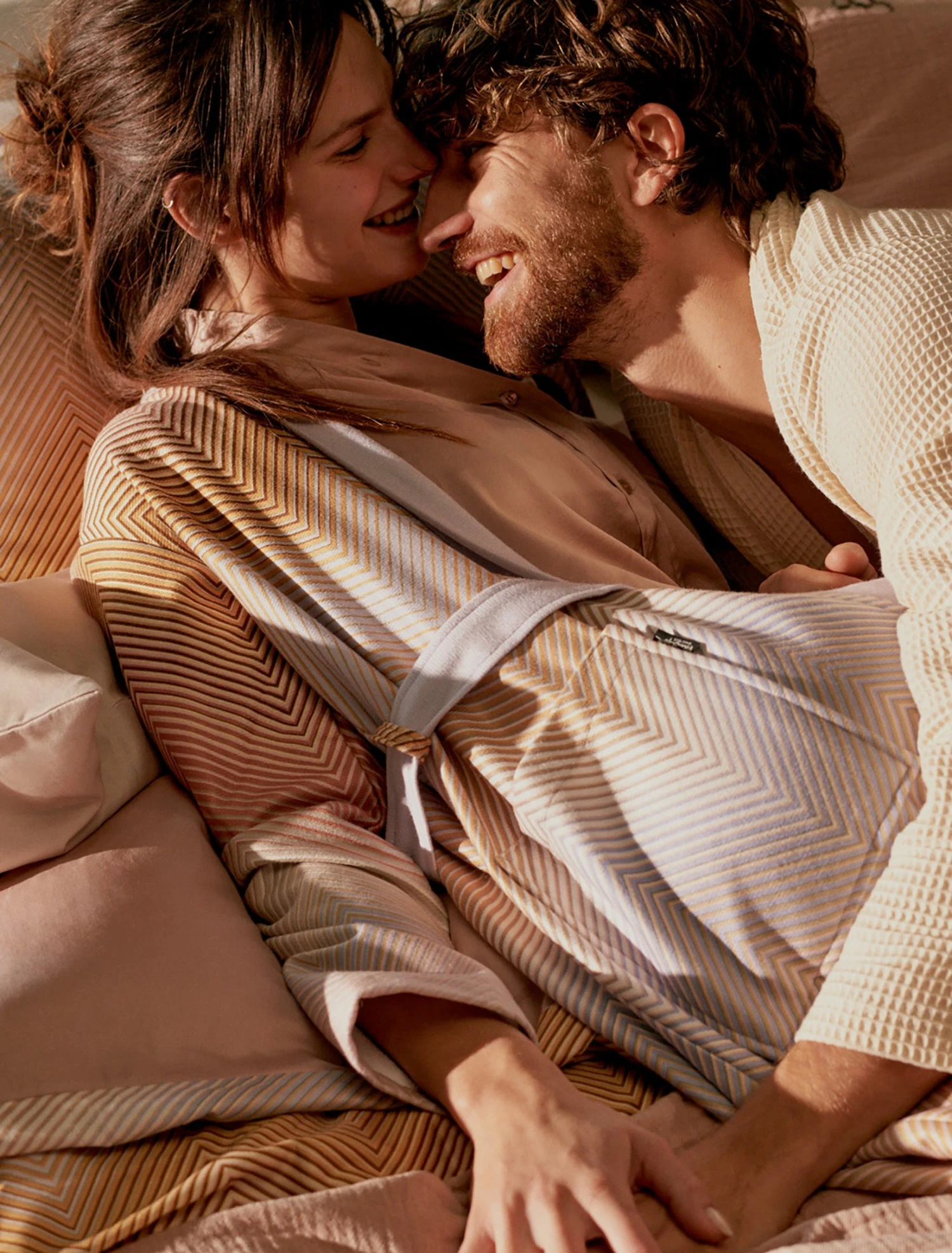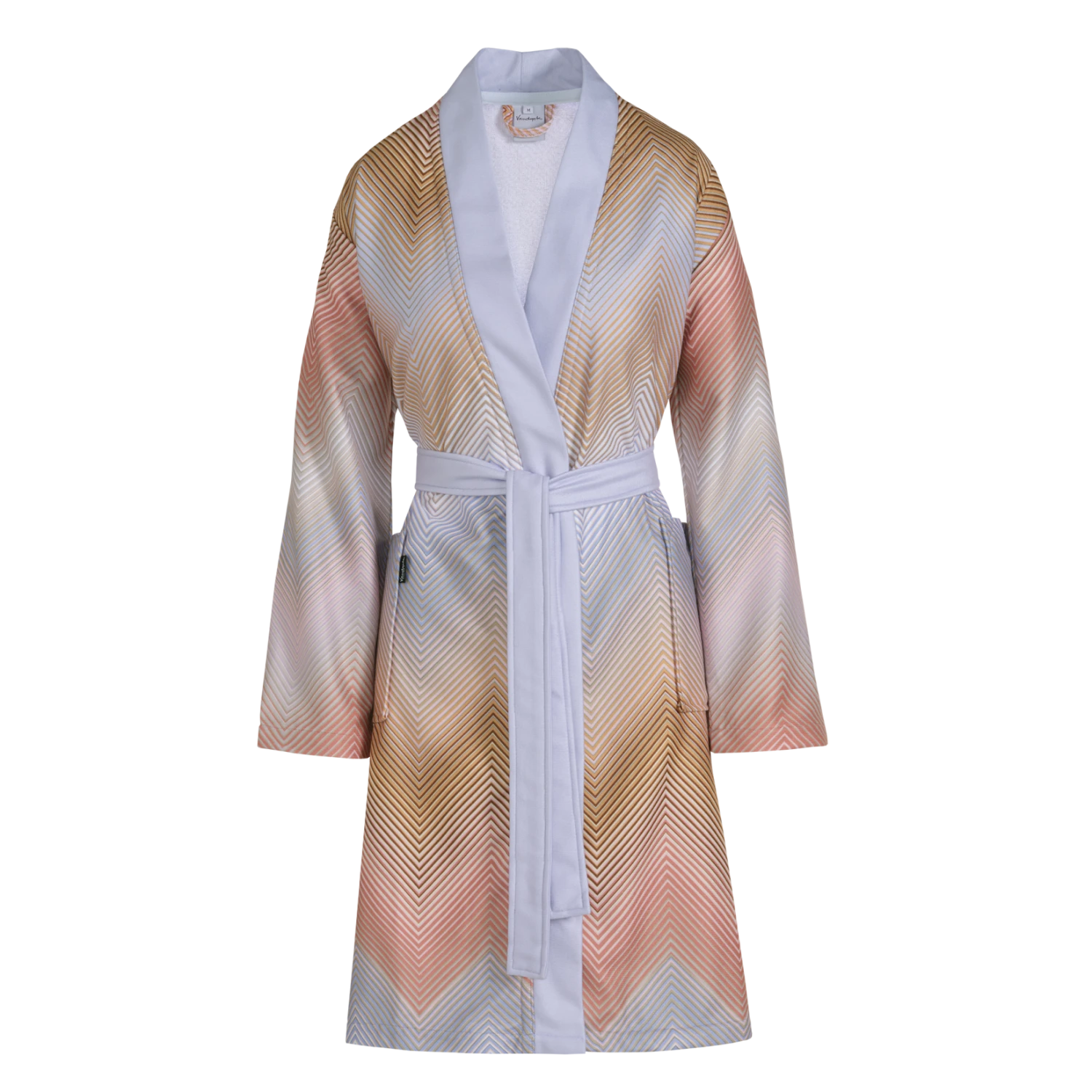 [[viola]]De mooie Bella viola badjas heeft zigzaglijnen in verschillende tinten blauw, paars, roze en oranje. Deze badjas van Vandyck is afgewerkt met grote steekzakken, brede licht lila revers en wordt gesloten met een ceintuur. Doordat de badjas gemaakt is met een combinatie van bamboe, katoen en polyester, voelt het niet alleen licht aan, maar ademt het ook. Maak de look compleet met het bijpassende dekbedovertrek Ziggy viola.[[viola END]][[cream tan]]De mooie Bella cream tan badjas heeft zigzaglijnen in verschillende tinten groen, oranje en rood. Deze badjas van Vandyck is afgewerkt met grote steekzakken, brede off white revers en wordt gesloten met een ceintuur. Doordat de badjas gemaakt is met een combinatie van bamboe, katoen en polyester, voelt het niet alleen licht aan, maar ademt het ook. Maak de look compleet met het bijpassende dekbedovertrek Ziggy cream tan.[[cream tan END]][[pearl blue]] De mooie Bella pearl blue badjas heeft zigzag lijnen in verschillende tinten bruin, groen blauw en rood. Als je er wat langer naar kijkt, dan lijken de lijnen wazig terwijl het strakgetrokken lijnen zijn. Deze badjas van Vandyck is afgewerkt met grote steekzakken, brede licht blauwe revers en wordt gesloten met een ceintuur. Doordat de badjas gemaakt is met een combinatie van bamboe, katoen en polyester, voelt het niet alleen licht aan, maar ademt het ook. Maak de look compleet met het bijpassende dekbedovertrek Ziggy. [[pearl blue END]][[multi]]De mooie Bella multi badjas heeft zigzag lijnen in verschillende tinten bruin, blauw, groen, terracotta en rood. Als je er wat langer naar kijkt, dan lijken de lijnen wazig terwijl het strakgetrokken lijnen zijn. Deze badjas van Vandyck is afgewerkt met grote steekzakken, brede groene revers en wordt gesloten met een ceintuur. Doordat de badjas gemaakt is met een combinatie van bamboe, katoen en polyester, voelt het niet alleen licht aan, maar ademt het ook. Maak de look compleet met het bijpassende dekbedovertrek Ziggy.[[multi END]][[thyme]]Bella badjas thyme is een lange badjas met  hele fijne zigzaglijnen in groen, grijs, bruin, wit en beige. De badjas heeft grote insteekzakken, brede effen groene revers en wordt gesloten met een ceintuur. De Bella badjas thyme van Vandyck heeft door  de fijne lijnen en lichte kleuren een subtiele elegantie. Het is gemaakt van 45% bamboe, 20% katoen en 35% polyester. Hierdoor heeft de badjas niet alleen een goed absorptievermogen, het is ook lekker licht om te dragen. De Bella badjas matcht goed met het dekbedovertrek Ziggy.[[thyme END]][[mineral blue]]Bella badjas mineral blue is een lange badjas met  hele fijne zigzaglijnen in blauw, grijs, bruin, wit en beige. De badjas heeft grote insteekzakken, brede blauwe groene revers en wordt gesloten met een ceintuur. De Bella badjas mineral blue van Vandyck heeft door  de fijne lijnen en lichte kleuren een subtiele elegantie. Het is gemaakt van 45% bamboe, 20% katoen en 35% polyester. Hierdoor heeft de badjas niet alleen een goed absorptievermogen, het is ook lekker licht om te dragen. De Bella badjas matcht goed met het dekbedovertrek Ziggy.[[mineral blue END]]