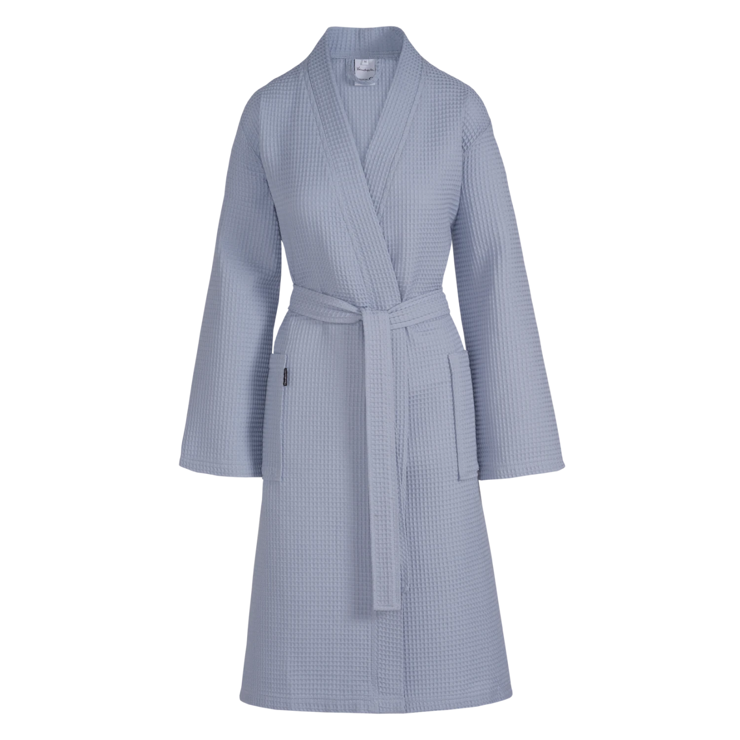 De Biarritz badjas in lavender blue is een uni badjas met een wafel structuur. De lange badjas heeft aan de beide zijden grote insteek zakken en een lusje in de kraag zodat je je badjas handig kunt ophangen.