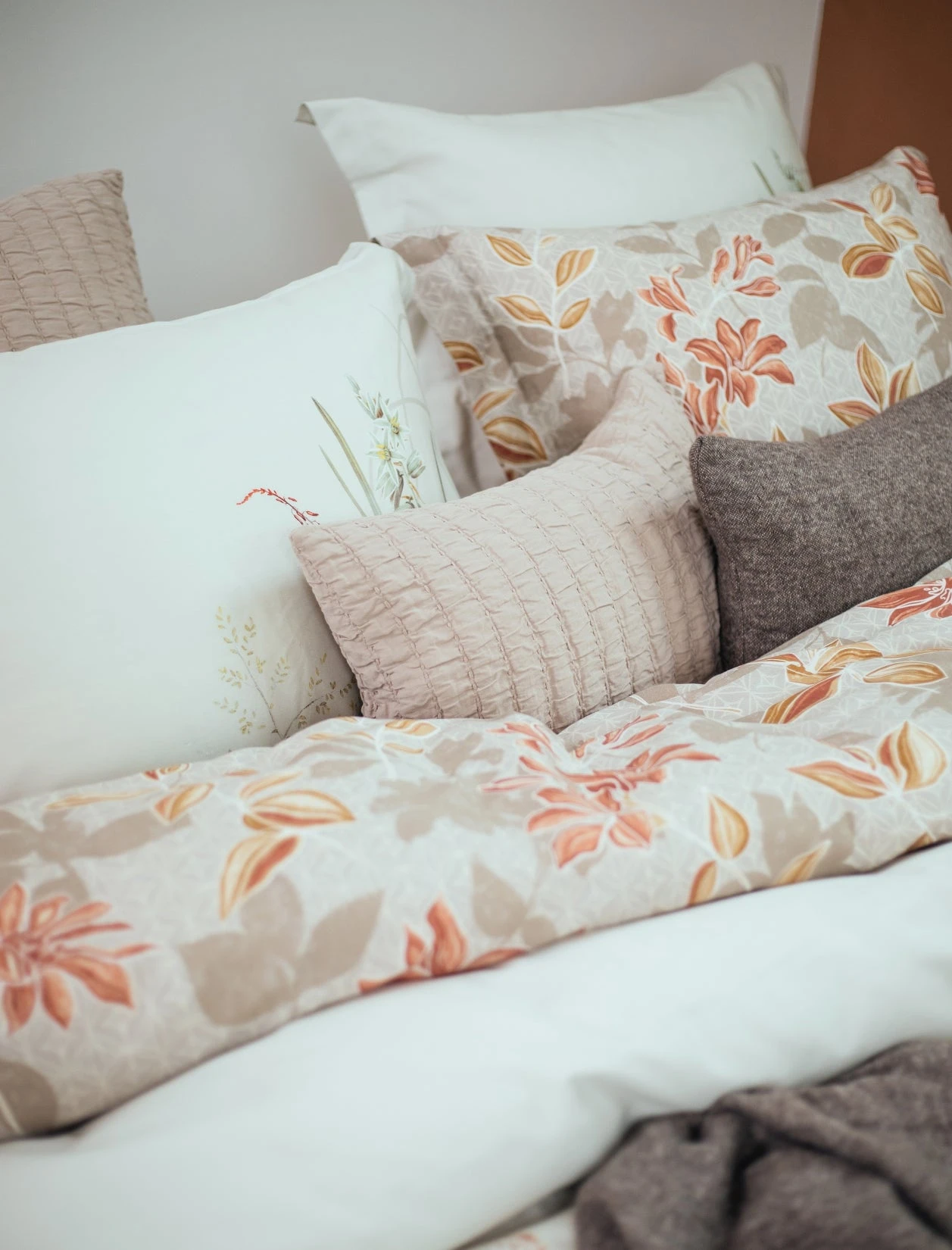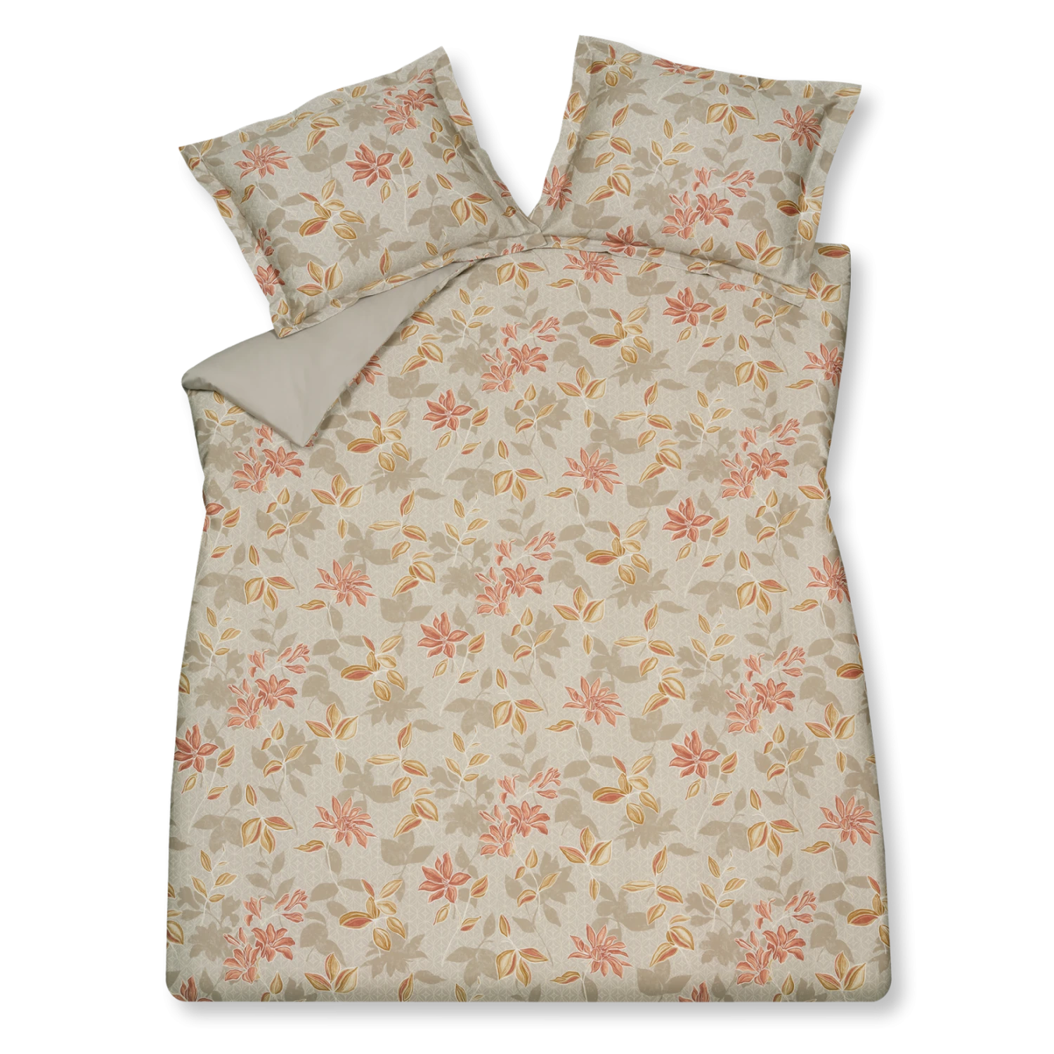 Cashmere Glow linen dekbedovertrek heeft rode bloemen met lichtbruine bladeren. De achtegrond heeft schaduwen van de bloemen en bladeren op een licht taupe achtergrond met een fijn patroon van cirkels en lijnen. De achterkant van het dekbedovertrek is effen taupe. De kussens hebben hetzelfe patroon met bloemen en bladeren. Door de digitale druk, komt de levensechte print helemaal tot leven. Met Cashmere Glow linen dekbedovertrek van Vandyck wil je niks liever dan in bed blijven onder het dekbedovertrek dat net zo zacht lijkt als een cashmere trui. Dit 100% katoensatijnen dekbedovertrek biedt een luxueuze en comfortabele slaapervaring dankzij de zachte, soepele textuur en ademende eigenschappen. Het speciale weefsel van fijne katoengaren zorgt voor een glad oppervlak en lichte glans. Hierdoor voelt het heerlijk zacht op de huid, wat zorgt voor comfortabel slapen. Bovendien reguleert katoen van nature de lichaamstemperatuur en absorbeert het vocht, wat resulteert in een aangenaam slaapklimaat en goede nachtrust.