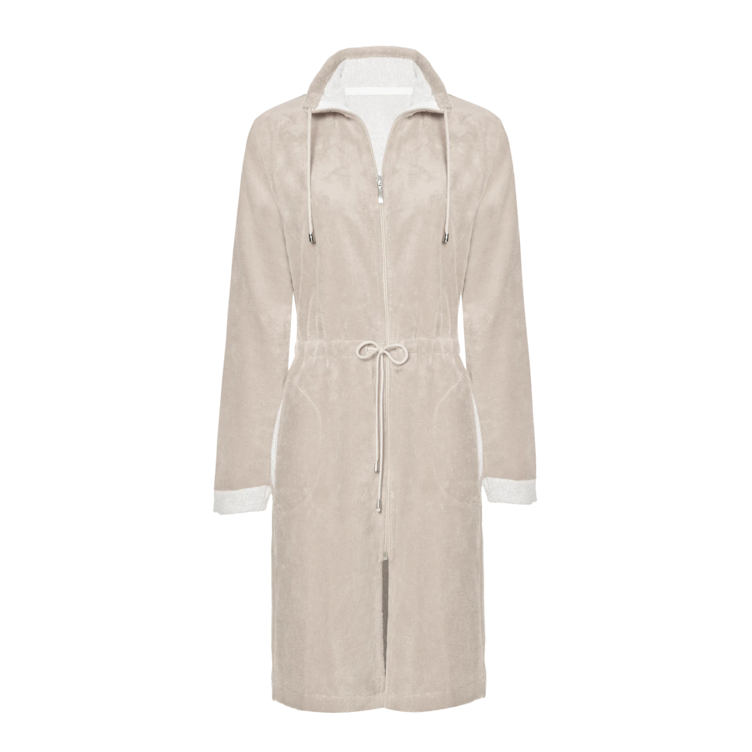 Chicago badjas is een effen velours badjas met een ritssluiting. Het is een prachtige korte badjas met een zachte glans, die gevoerd is met bamboe. De Chicago badjas van Vandyck heeft een chique uitstraling doordat de badjas getailleerd kan worden met een koord. Deze badjas is geschikt voor dames.