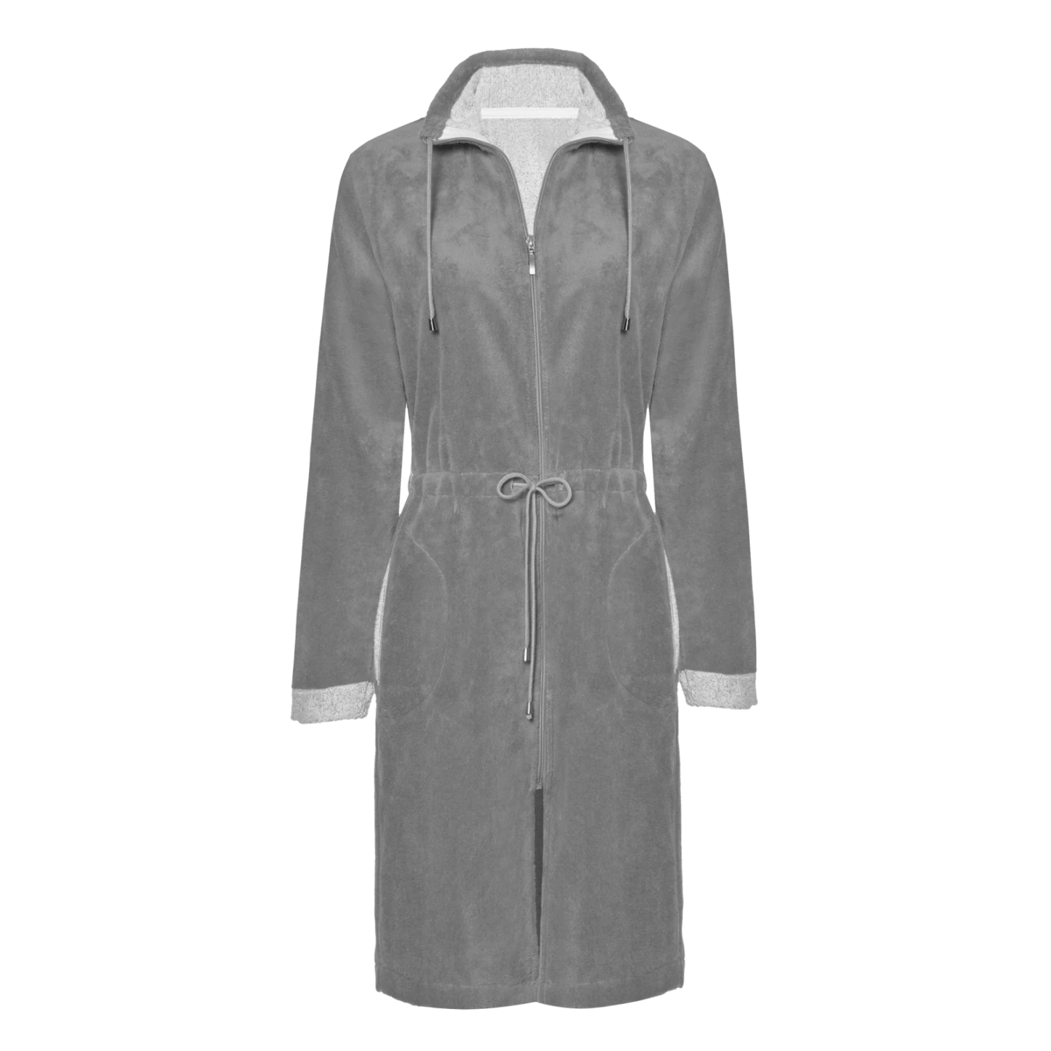 Chicago badjas is een effen velours badjas met een ritssluiting. Het is een prachtige korte badjas met een zachte glans, die gevoerd is met bamboe. De Chicago badjas van Vandyck heeft een chique uitstraling doordat de badjas getailleerd kan worden met een koord. Deze badjas is geschikt voor dames.