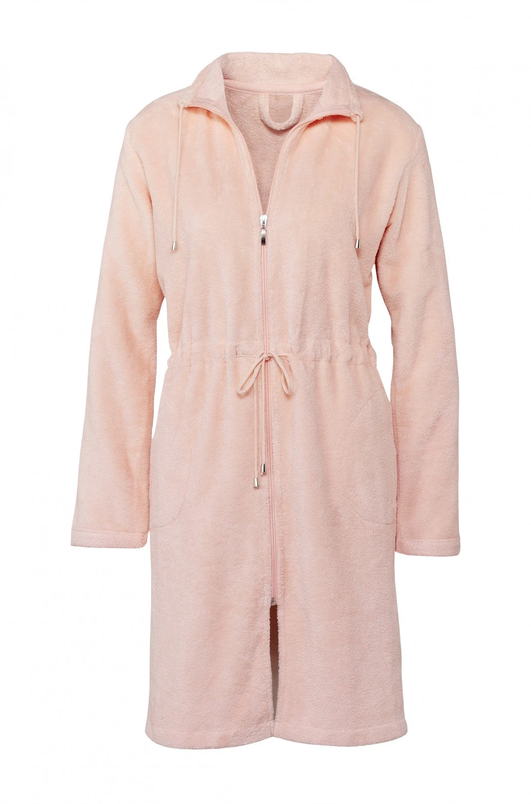 Chicago badjas is een effen velours badjas met een ritssluiting. Het is een prachtige korte badjas met een zachte glans, die gevoerd is met bamboe. De Chicago badjas van Vandyck heeft een chique uitstraling doordat de badjas getailleerd kan worden met een koord. Deze badjas is geschikt voor dames.