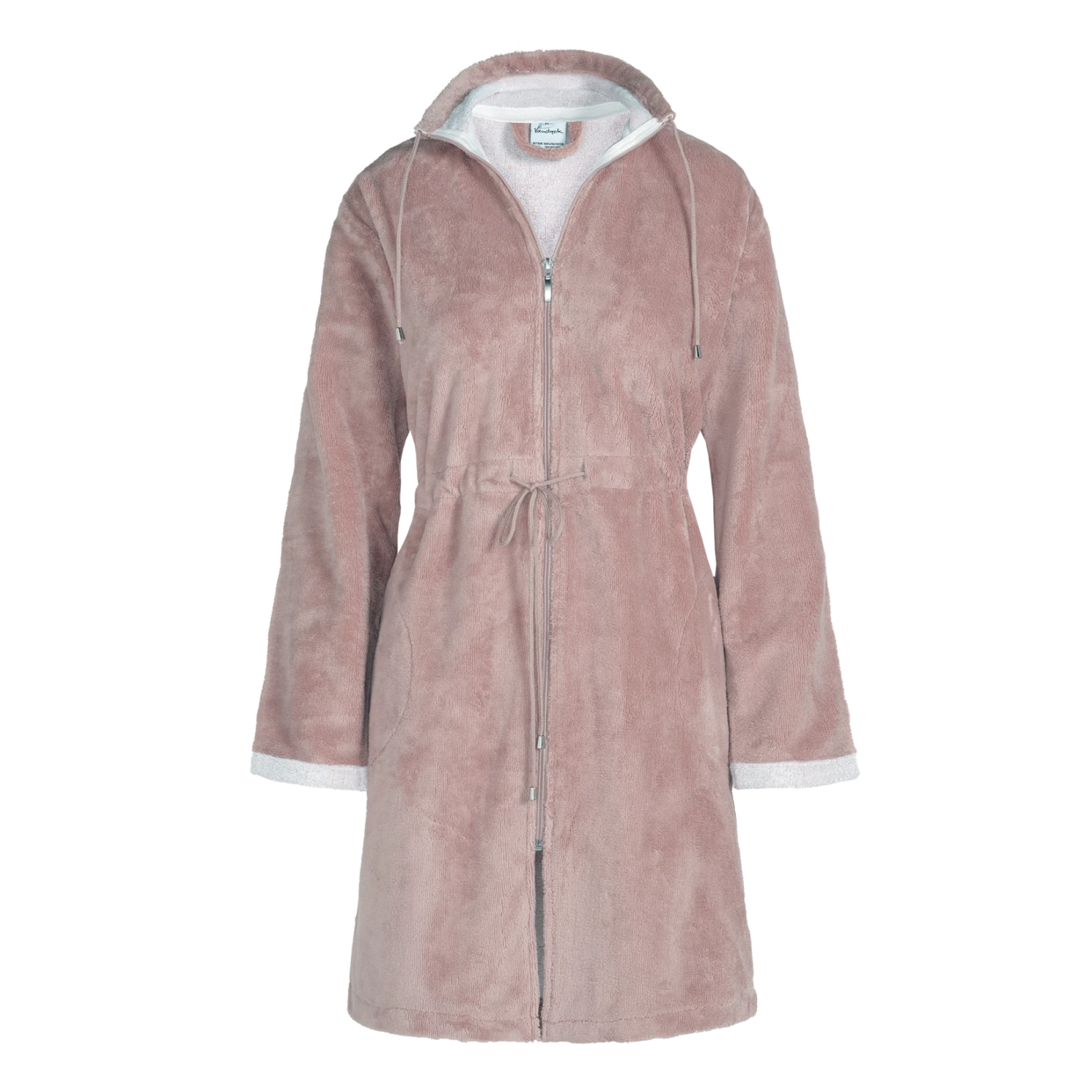Chicago badjas is een effen velours badjas met een ritssluiting. Het is een prachtige korte badjas met een zachte glans, die gevoerd is met bamboe. De Chicago badjas van Vandyck heeft een chique uitstraling doordat de badjas getailleerd kan worden met een koord. Deze badjas is geschikt voor dames.