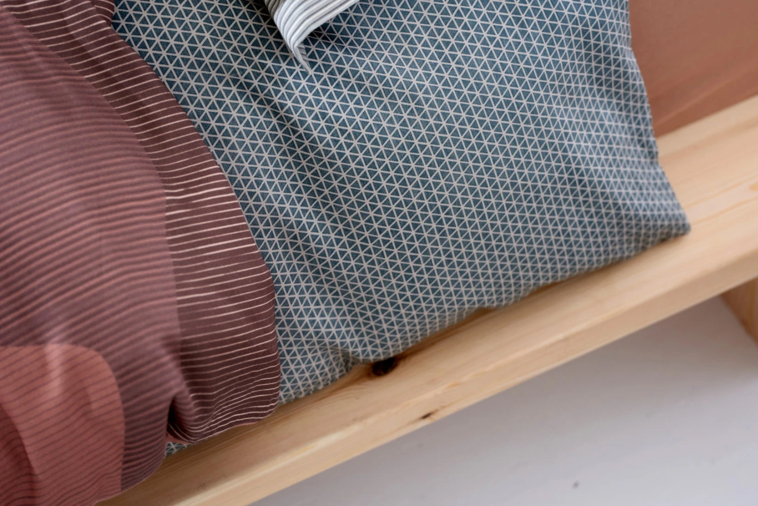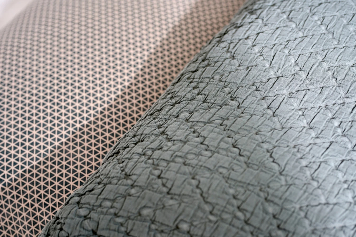 Een grafisch en trendy design is dekbedovertrekset Comfy! Comfy is verkrijgbaar in de kleuren anthraciet en sage green. De print bestaat uit driehoeken van groot naar klein waardoor de print lijkt te verlopen van donker naar licht. De print siert de voor- en achterzijde en de kussenslopen hebben een Oxford afwerking. Combineer Comfy met Home 95 plaid in de kleur anthracite of Home 81 plaid in de kleur fudge.