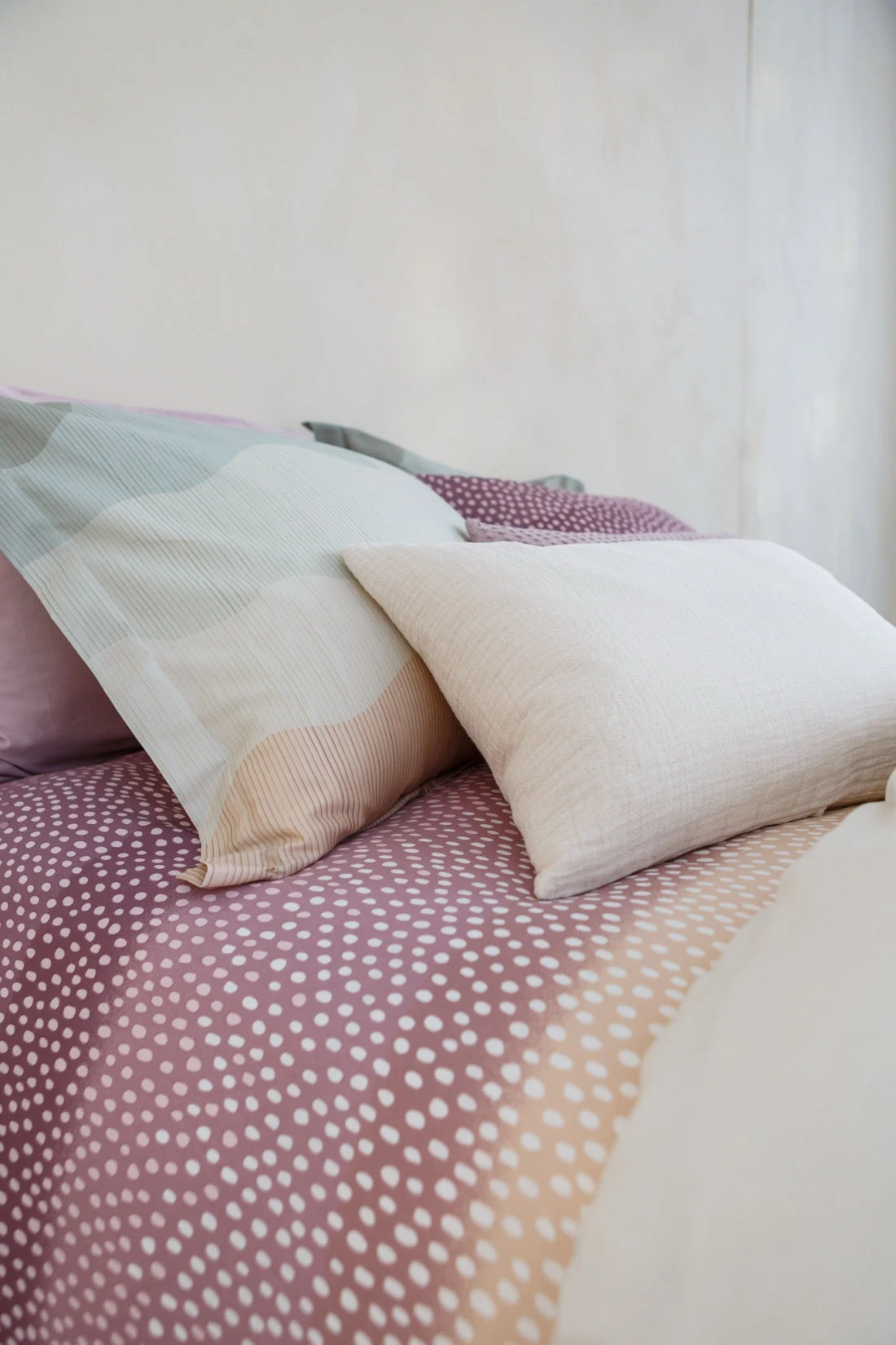 [[viola]]Drops viola dekbedovertrek heeft kleine witte stipjes op een achtergrond die verloopt van groen naar lichtroze naar paars. De achterkant van het dekbedovertrek heeft dezelfde print. De kussens verlopen van lichtroze naar paars met dezelfde witte stipjes. Drops viola dekbedovertrek van Vandyck doet denken alsof je door een, door de regen bedruppeld, raam een tuin inkijkt, alles lijkt in een waas en ultieme rust gehuld. Het is gemaakt van 100% katoensatijn hierdoor voelt het heerlijk zacht en soepel aan. Dit dekbedovertrek is ook beschikbaar in het blauw en leuk te combineren met onze Home Pique plaid en sierkussen in de kleur viola en moonscape.[[viola END]][[pearl blue]]Drops pearl blue dekbedovertreheeft kleine witte stipjes op een achtergrond die verloopt van donkergroen naar lichtgroen naar blauw. De achterkant van het dekbedovertrek heeft dezelfde print. De kussens verlopen van lichtgroen naar blauw met dezelfde witte stipjes. Drops pearl blue dekbedovertrek van Vandyck doet denken alsof je door een, door de regen bedruppeld, raam een tuin inkijkt, alles lijkt in een waas en ultieme rust gehuld. Het is gemaakt van 100% katoensatijn hierdoor voelt het heerlijk zacht en soepel aan. Dit dekbedovertrek is ook beschikbaar in het paars en is ook leuk te combineren met onze Purity 79 sierkussen in de kleur pearl blue.[[pearl blue END]]