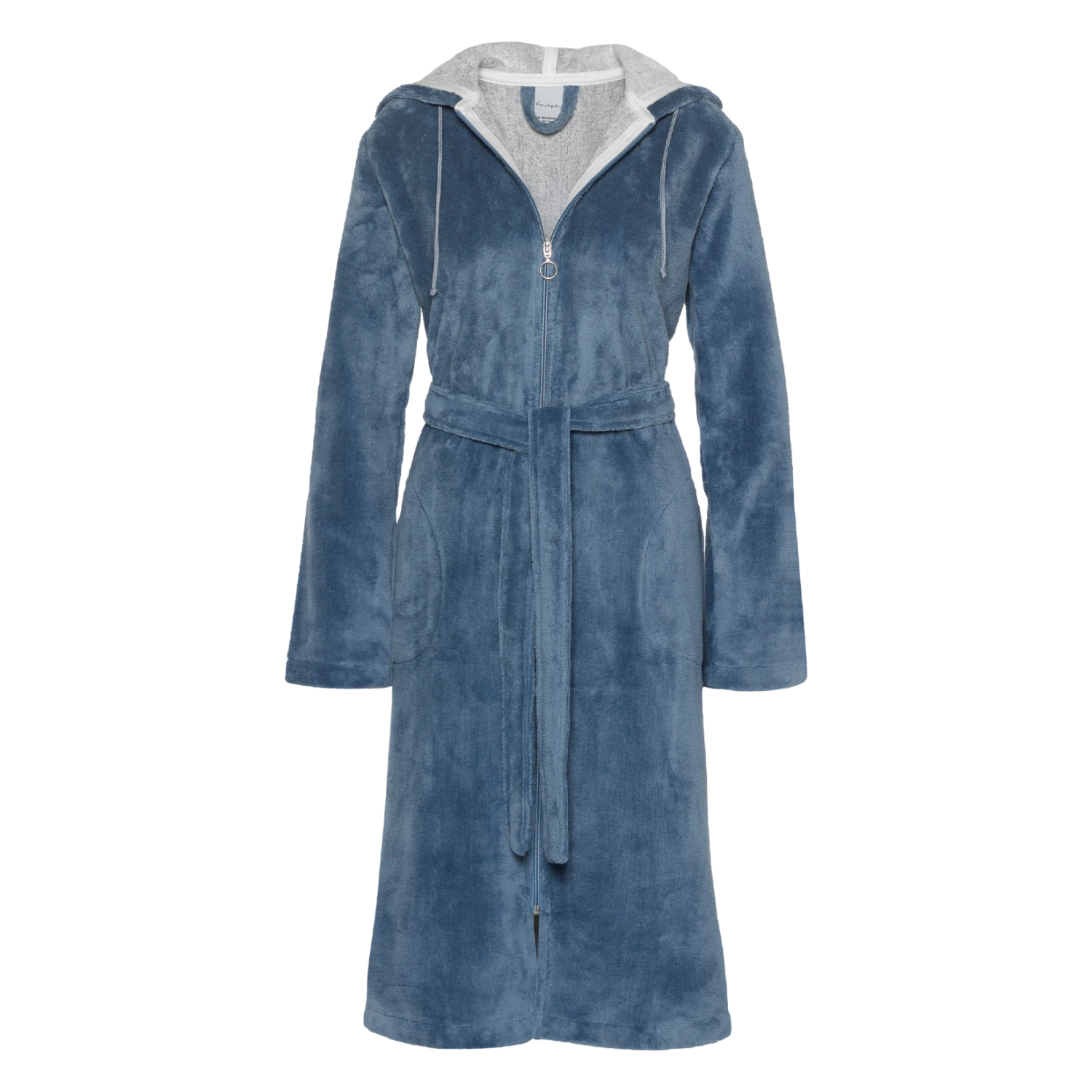 Badjas Duchess is een effen verlours badjas met ritssluiting. Het is een prachtige badjas met een zachte glans, die gevoerd is met bamboe. De Duchess badjas van Vandyck heeft een chique uitstraling doordat de badjas getailleerd kan worden met een ceintuur. Daarnaast heeft de Duchess een heerlijke capuchon. Deze badjas is geschikt voor dames.