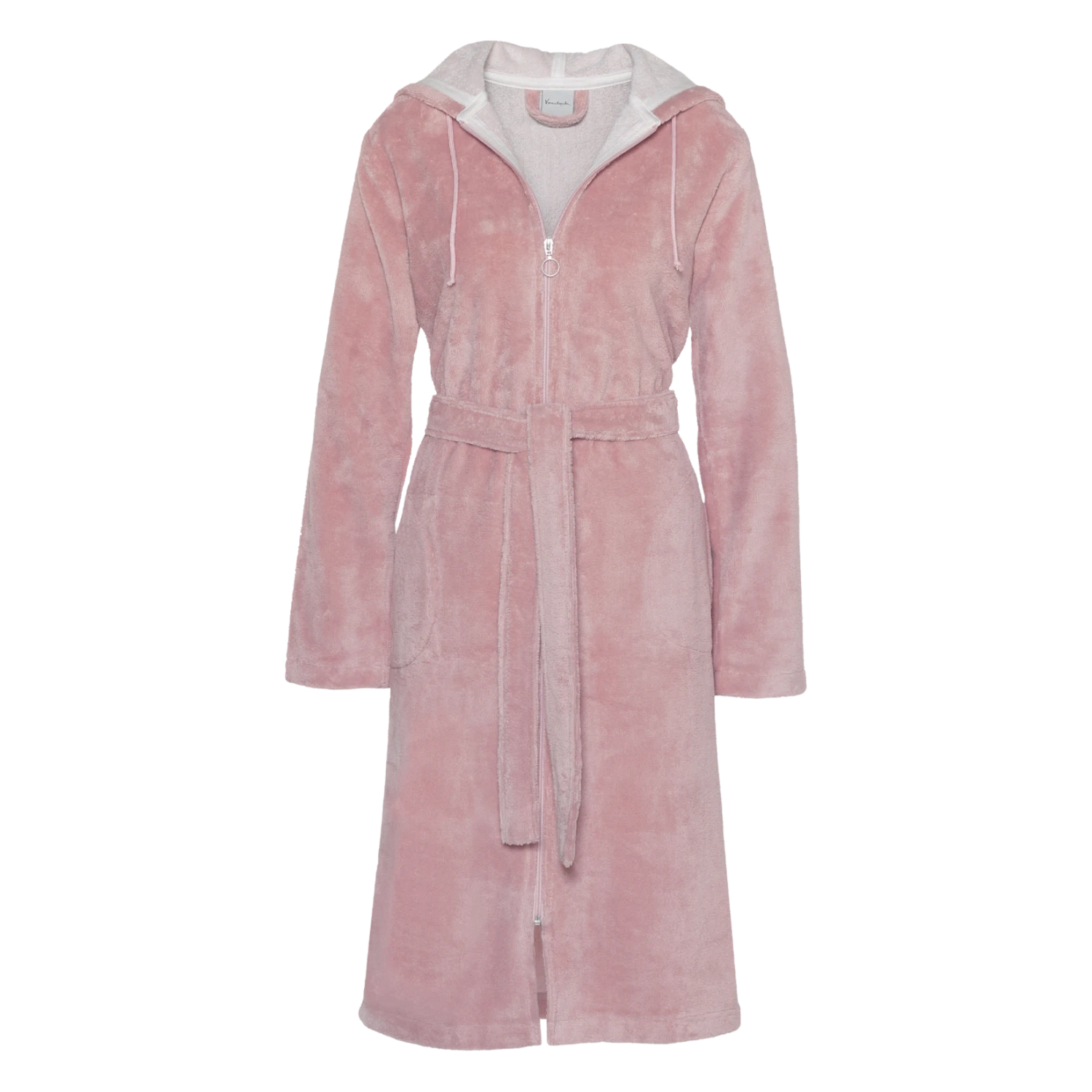 Badjas Duchess is een effen verlours badjas met ritssluiting. Het is een prachtige badjas met een zachte glans, die gevoerd is met bamboe. De Duchess badjas van Vandyck heeft een chique uitstraling doordat de badjas getailleerd kan worden met een ceintuur. Daarnaast heeft de Duchess een heerlijke capuchon. Deze badjas is geschikt voor dames.