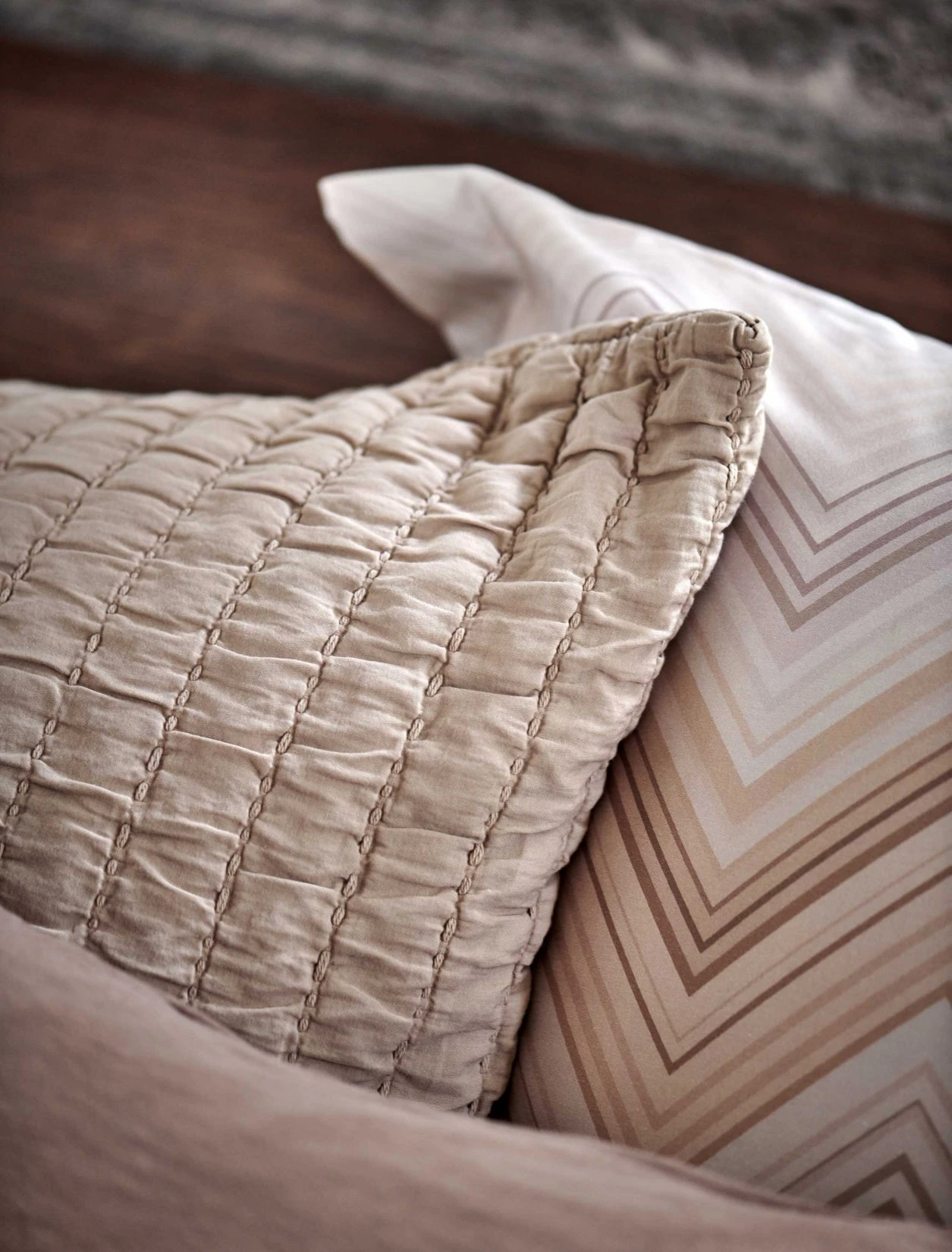 Dynamize taupe dekbedovertrek heeft zigzaglijnen die met de hand getrokken lijken te zijn in verschillende tinten bruin, beige en offwhite. De achterkant van het dekbedovertrek is effen beige. De kussens hebben aan beide zijden dezelfde zigzaglijnen, waardoor het lijkt alsof het patroon van het dekbedovertrek doorloopt in de kussens. Door de digitale druk, komt de levensechte print helemaal tot leven. Dynamize taupe dekbedovertrek van Vandyck geeft met de zigzaglijnen een leuke twist aan je slaapkamer en door de bruine tinten is het niet al te nadrukkelijk aanwezig. Dit 100% katoensatijnen dekbedovertrek biedt een luxueuze en comfortabele slaapervaring dankzij de zachte, soepele textuur en ademende eigenschappen. Het speciale weefsel van fijne katoengaren zorgt voor een glad oppervlak en lichte glans. Hierdoor voelt het heerlijk zacht op de huid, wat zorgt voor comfortabel slapen. Bovendien reguleert katoen van nature de lichaamstemperatuur en absorbeert het vocht, wat resulteert in een aangenaam slaapklimaat en goede nachtrust.
