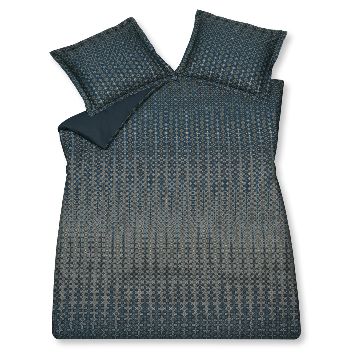 Energize blue ink dekbedovertrek heeft een verfijnd patroon met blauwe en bruine tinten. Het doet denken aan een moderne interpretatie van de gotische stijl waarbij door het gebruik van meer beige in het midden, er verloop in het patroon lijkt. De achterkant van het dekbedovertrek is effen donkerblauw. De kussens hebben een gedeelte van het patroon. Door de digitale druk, komt de levensechte print helemaal tot leven. Energize blue ink dekbedovertrek van Vandyck geeft een door het fijne patroon op een subtiele manier een luxe en smaakvolle uitstraling aan de slaapkamer. Maak de look compleet met de bijpassende badjas Andrea. Dit 100% katoensatijnen dekbedovertrek biedt een luxueuze en comfortabele slaapervaring dankzij de zachte, soepele textuur en ademende eigenschappen. Het speciale weefsel van fijne katoengaren zorgt voor een glad oppervlak en lichte glans. Hierdoor voelt het heerlijk zacht op de huid, wat zorgt voor comfortabel slapen. Bovendien reguleert katoen van nature de lichaamstemperatuur en absorbeert het vocht, wat resulteert in een aangenaam slaapklimaat en goede nachtrust.