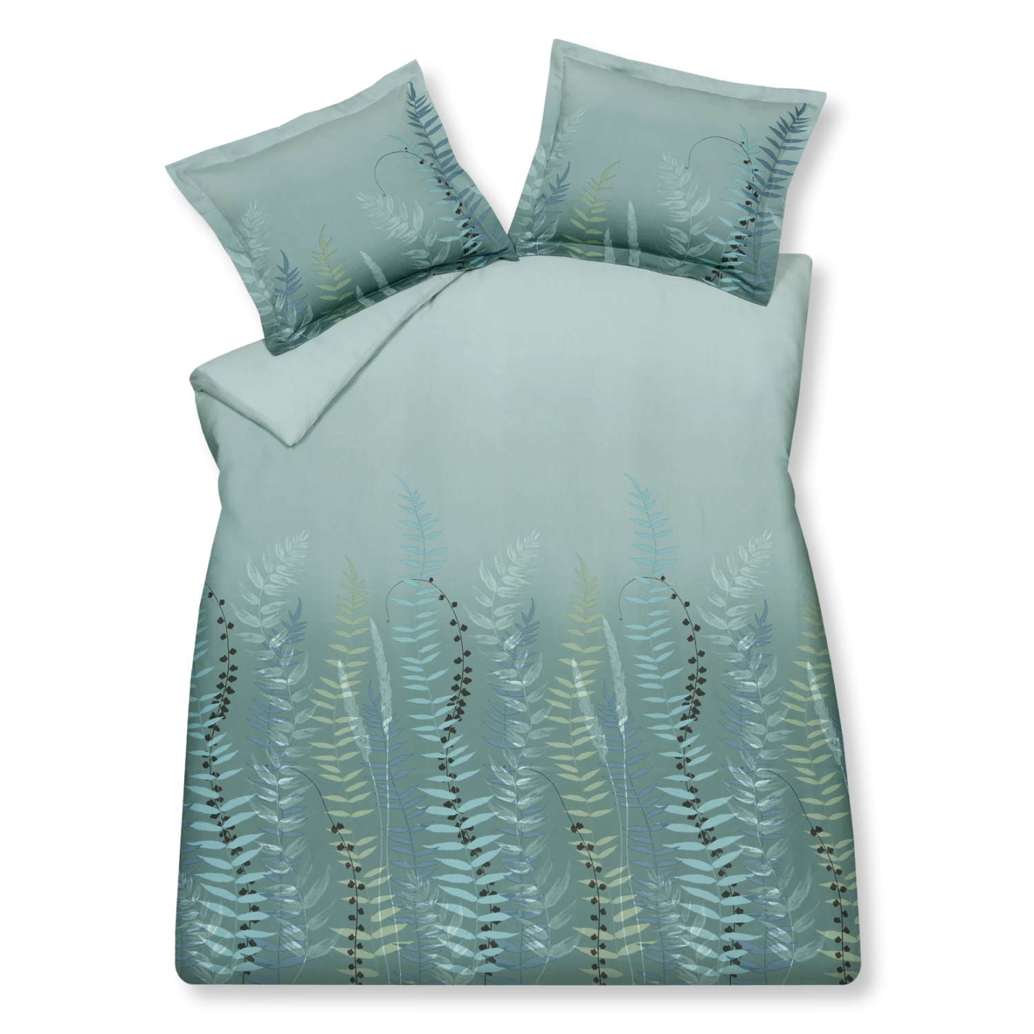 Dekbedovertrekset Evening Walk is een goede keuze voor op de slaapkamer! De print van dekbedovertrek Evening Walk is te herkennen aan de prachtige bladeren die van onder naar boven uitlopen. De achtergrondkleur heeft een verloop van donker naar licht. Beide zijden van het overtrek hebben dezelfde print. Evening Walk geeft je slaapkamer een warme knusse uitstraling. De interieur kleuren voor het jaar 2022 zijn frisse en natuurlijke tinten denk aan de kleuren groen en blauw. Deze kleuren worden geassocieerd met natuur, energie en rust en daarom een perfecte keuze om in je slaapkamer te gebruiken, met Evening Walk kom je helemaal tot rust!