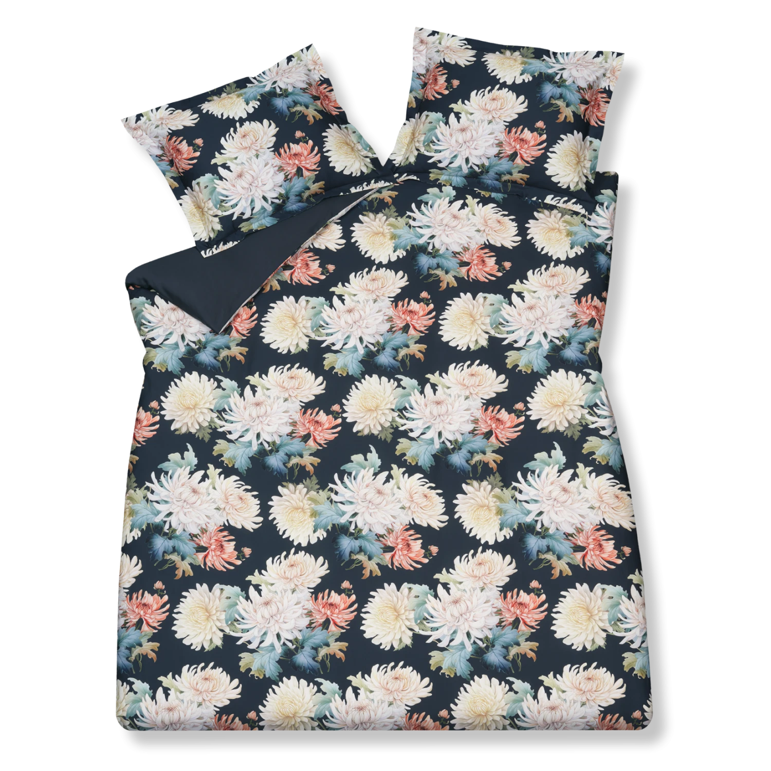 Floral Bliss blue ink dekbedovertrek heeft roze, oranje en rode bloemen met herstbladeren er omheen op een donkerblauwe achtergrond. De achterkant van het dekbedovertrek is effen donkerblauw. De kussens hebben hebben aan beide zijden dezelfde bloemen. Door de digitale druk, komt de levensechte print helemaal tot leven. Met Floral Bliss blue ink dekbedovertrek van Vandyck val je heerlijk in slaap in een zee van bloemen. Combineer met Dark Midnight blue ink en Pure 84 rose dawn. Dit 100% katoensatijnen dekbedovertrek biedt een luxueuze en comfortabele slaapervaring dankzij de zachte, soepele textuur en ademende eigenschappen. Het speciale weefsel van fijne katoengaren zorgt voor een glad oppervlak en lichte glans. Hierdoor voelt het heerlijk zacht op de huid, wat zorgt voor comfortabel slapen. Bovendien reguleert katoen van nature de lichaamstemperatuur en absorbeert het vocht, wat resulteert in een aangenaam slaapklimaat en goede nachtrust.