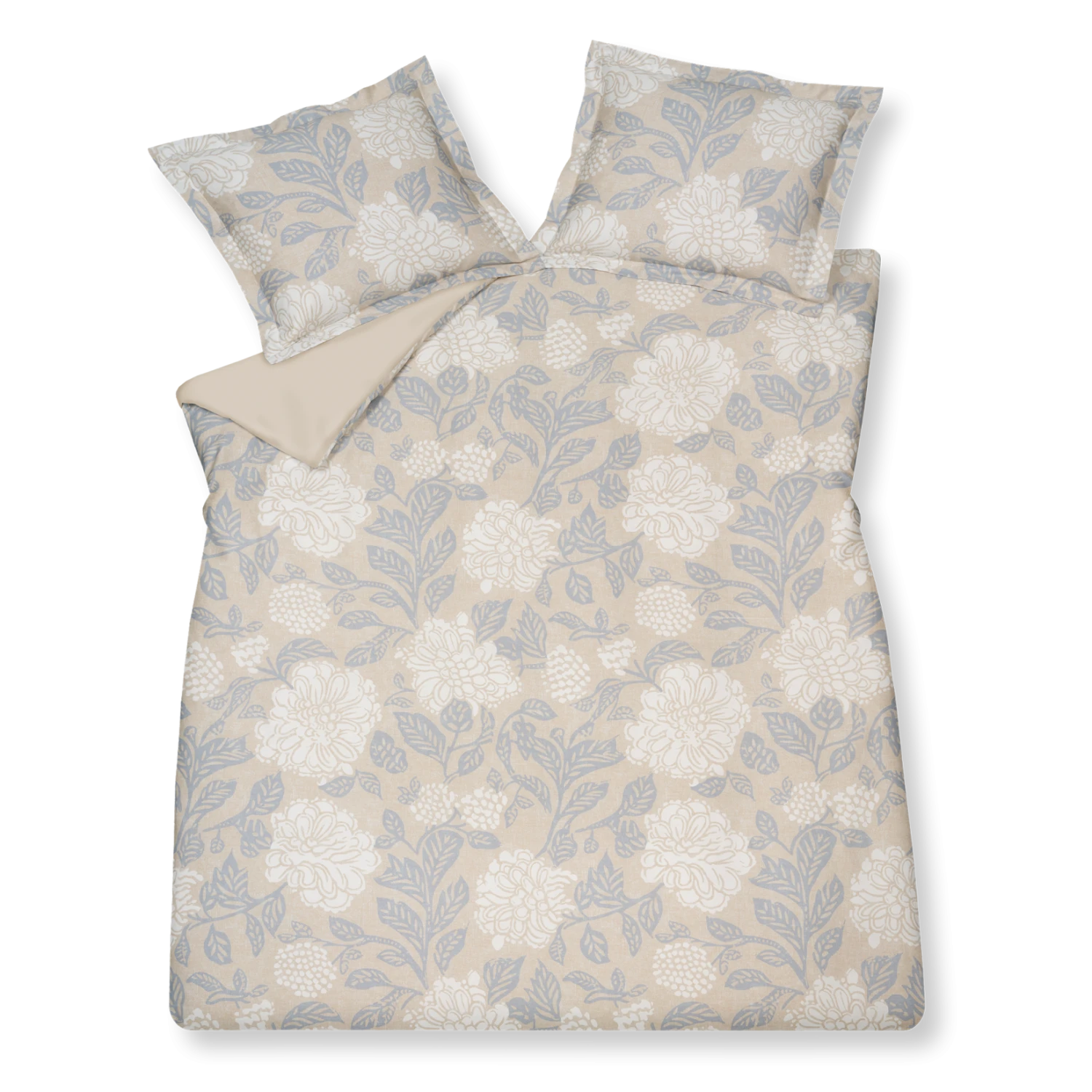 Fresh Linen linen dekbedovertrek heeft bloemen en bladeren die op abstracte wijze getekend zijn met vlakken, lijnen en stippen in wit en blauw op een beige achtergrond. De achterkant van het dekbedovertrek is effen beige. De kussens hebben aan beide zijden dezelfde bloemen en bladeren. Door de digitale druk, komt de levensechte print helemaal tot leven. Fresh Linen linen dekbedovertrek van Vandyck is een fraaie combinatie van een luxe patroon met een stoere uitstraling doordat de wevingstructuur goed zichtbaar is. Maak de look compleet met badjas Marly. Dit 100% katoensatijnen dekbedovertrek biedt een luxueuze en comfortabele slaapervaring dankzij de zachte, soepele textuur en ademende eigenschappen. Het speciale weefsel van fijne katoengaren zorgt voor een glad oppervlak en lichte glans. Hierdoor voelt het heerlijk zacht op de huid, wat zorgt voor comfortabel slapen. Bovendien reguleert katoen van nature de lichaamstemperatuur en absorbeert het vocht, wat resulteert in een aangenaam slaapklimaat en goede nachtrust.