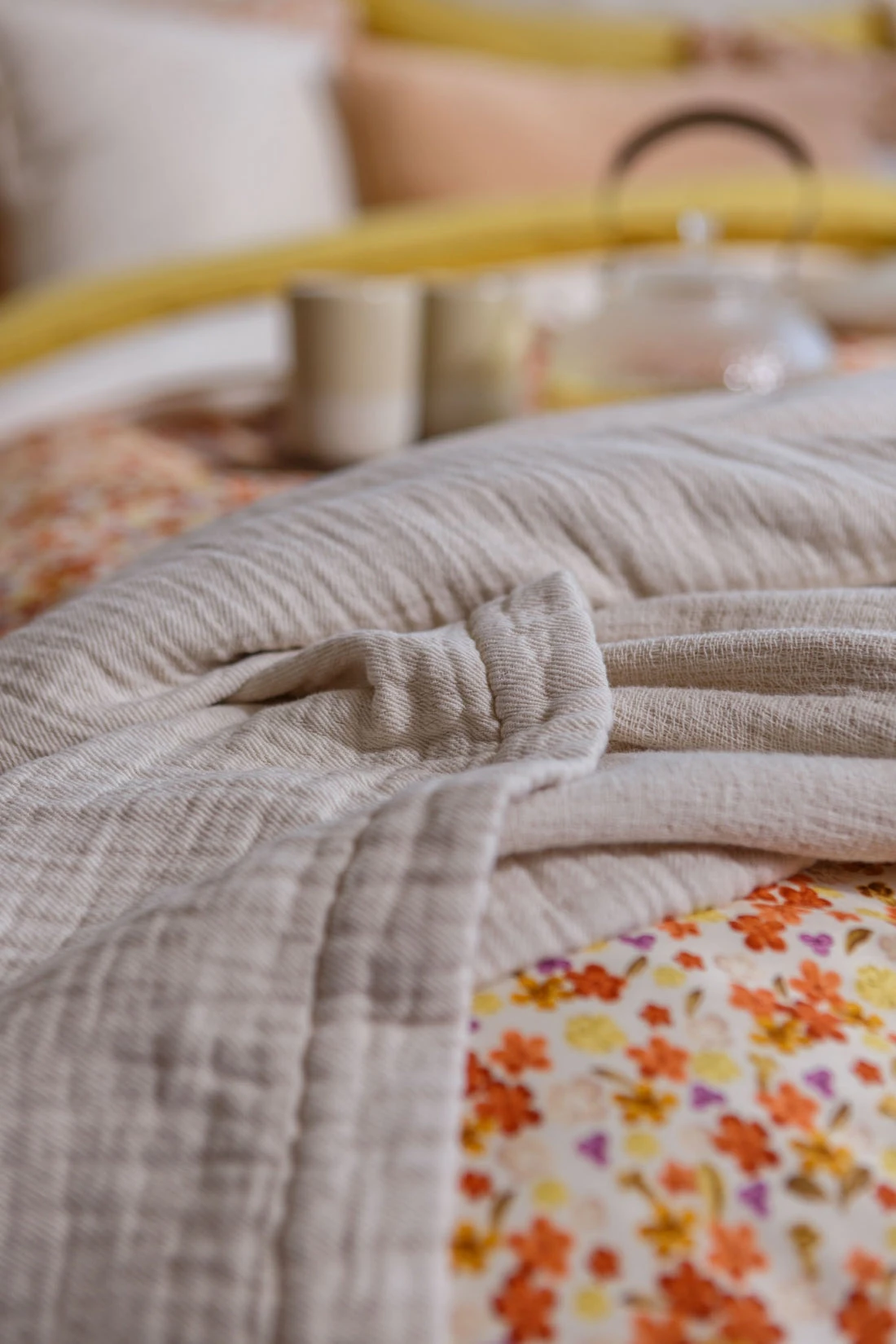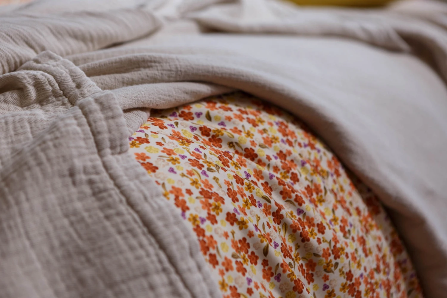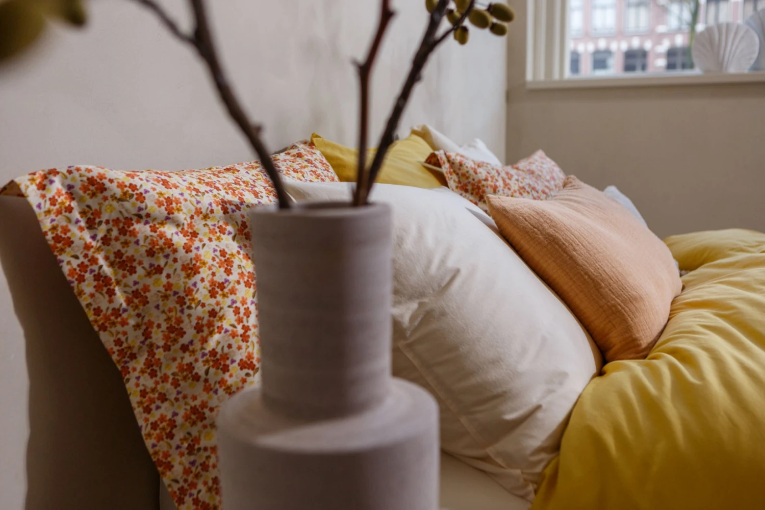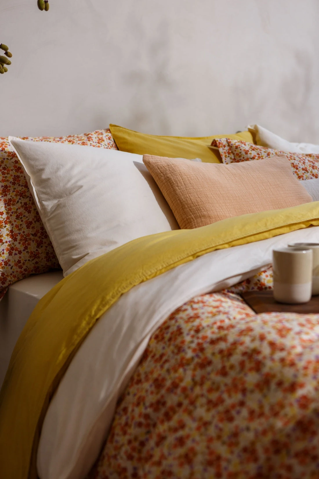 Full Bloom multi dekbedovertrek is helemaal bedekt met kleine bloemen in verschillende tinten oranje, geel, paars en wit op een beige achtergrond. De achterkant van het dekbedovertrek is effen beige. De kussens hebben ook overal kleine bloemen. Door de digitale druk, komt de levensechte print helemaal tot leven. Full Bloom multi dekbedovertrek van Vandyck laat je door de vrolijke bloemen, de grauwe winterdagen vergeten. Het is gemaakt van 100% katoensatijn hierdoor voelt het heerlijk zacht en soepel aan. Dit dekbedovertrek is ook leuk te combineren met onze Pure 68 plaid en sierkussen in de kleuren cream tan en apricot. Ga je voor meer contrast? Combineer het dan met de Pure 68 in de kleur sunlight.Â