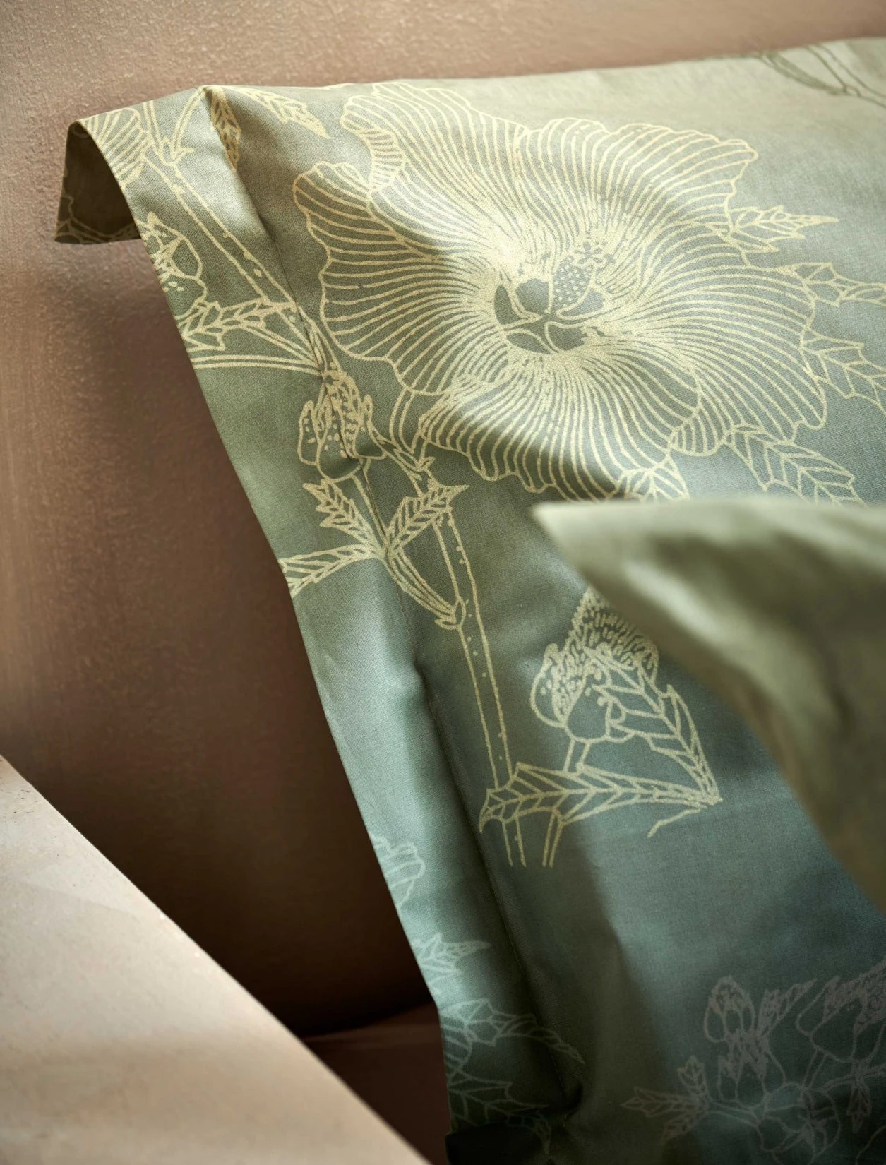Green Gift smoke green dekbedovertrek heeft lijngetekende bloemen en distelbladeren op een achtergrond die van groen overgaat in beige. De achterkant van het dekbedovertrek heeft dezelfde print. De kussens hebben aan beide zijden dezelfde bloemen en vervagen eveneens van groen naar beige. Green Gift smoke green dekbedovertrek van Vandyck geeft een rustige en natuurlijke sfeer in je slaapkamer. Combineer met het Starling dekbedovertrek. Het is gemaakt van 100% katoen hierdoor is het materiaal sterker, maar voelt het toch zacht aan. Het is een ademend en zacht materiaal dat een comfortabele nachtrust garandeert. Het katoen zorgt ervoor dat je huid kan ademen en reguleert de temperatuur, waardoor je het hele jaar door kunt genieten van een aangename slaapomgeving.