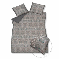 Home 96 is te herkennen aan de prachtige paisley print. Een echte seventies trend wat nu weer helemaal terug gekomen is. Het dekbedovertreksetset is gemaakt van een mooie luxe katoensatijn (300 thread count). De voorzijde van de dekbedovertrekset heeft een print en de achterzijde is effen. De slopen hebben aan beide zijde dezelfde print en zijn afgewerkt met een piping in bijpassende kleur. Bij dit mooie dekbedovertrekset hebben we een bijpassende badjas: Emma.