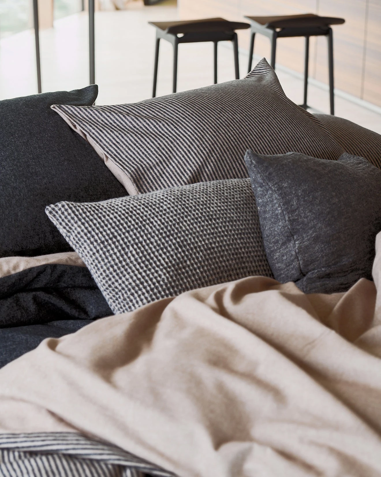 Home Como multi dekbedovertrek heeft fijne donkergrijze en beige lijnen. De achterkant van het dekbedovertrek is effen beige. De kussens hebben ook aan de ene kant de lijnen en aan de andere kant is het effen beige. Home Como multi dekbedovertrek van Vandyck heeft door het geborstelde oppervlak en de diepe tinten een extra warme uitstraling. Dit dekbedovertrek is gemaakt van katoen flanel. Het heeft een zacht en geborsteld oppervlak, dat perfect is voor koude nachten. De duurzame vezels zorgen voor langdurige kwaliteit, terwijl de uitstekende ademende eigenschappen je warm houden zonder oververhit te raken. Geniet van een heerlijk cocooning-gevoel en een heerlijke nachtrust onder onze katoen flanel dekbedovertrekken.