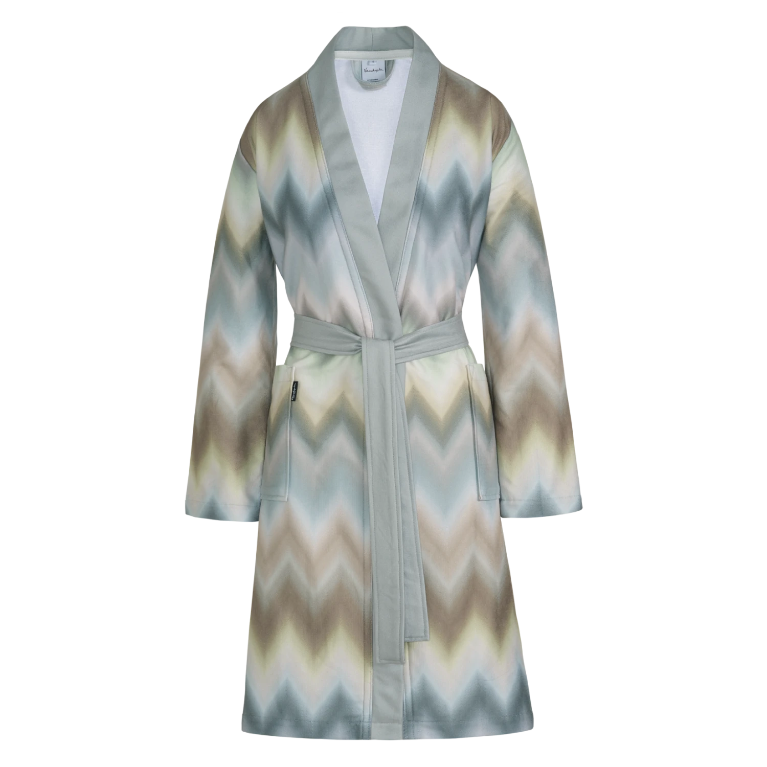 Luna thyme badjas heeft zigzaglijnen in verschillende tinten blauw, groen en bruin. De badjas heeft grote insteekzakken, brede revers en wordt gesloten met een ceintuur in een zachte mintgroen. Luna thyme badjas van Vandyck is de perfecte combinatie van een hippe uitstraling met puur comfort. Het is gemaakt van 45% bamboe, 20% katoen en 35% polyester. Hierdoor heeft de badjas niet alleen een goed absorptievermogen, het is ook lekker licht om te dragen. De Luna badjas is ook verkrijgbaar in de kleur moonscape.