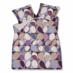 Orbit moonscape dekbedovertrek heeft vlakken met ronde vormen in verschillende tinten paars en blauw, waarbij het haast op verschillende standen van de maan lijkt. De achterkant van het dekbedovertrek is effen beige. De kussens hebben aan beide kanten een aantal vlakken met een brede rand. Orbit moonscape dekbedovertrek van Vandyck brengt je in een ander universum en laat je alles van verschillende kanten bekijken. Dit 100% katoensatijnen dekbedovertrek biedt een luxueuze en comfortabele slaapervaring dankzij de zachte, soepele textuur en ademende eigenschappen. Het speciale weefsel van fijne katoengaren zorgt voor een glad oppervlak en lichte glans. Hierdoor voelt het heerlijk zacht op de huid, wat zorgt voor comfortabel slapen. Bovendien reguleert katoen van nature de lichaamstemperatuur en absorbeert het vocht, wat resulteert in een aangenaam slaapklimaat en goede nachtrust.
