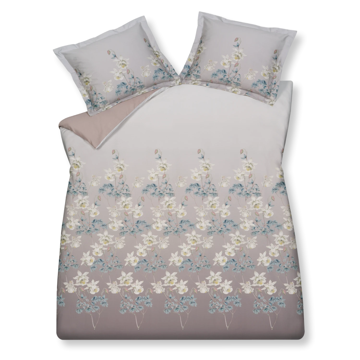 Dekbedovertrek Peaceful heeft een stone kleurige achtergrond die wat lichter wordt aan de bovenkant. De overtrekset is versierd met witte bloemen en takken in verschillende kleuren. De kussens hebben dezelfde print als het dekbedovertrek en de achterkant is effen. Door de rustige kleuren geeft dekbedovertrek Peaceful wat kalmte aan je interieur.