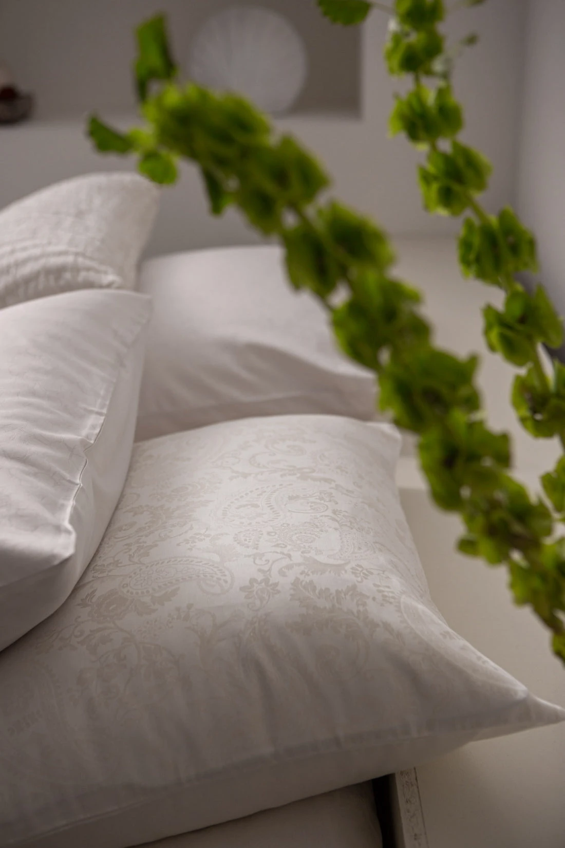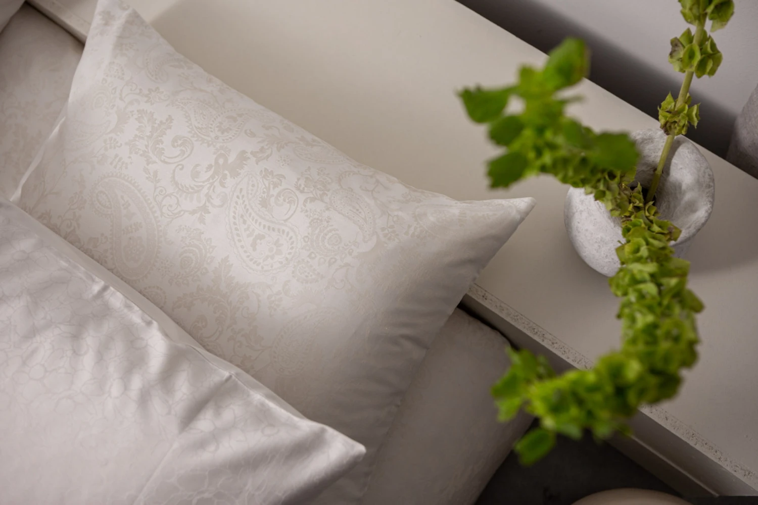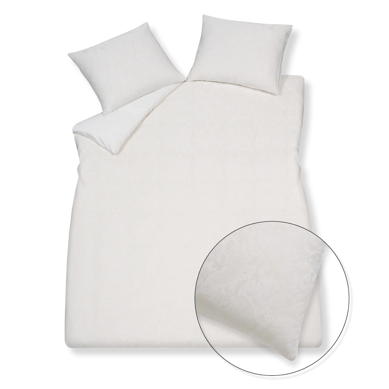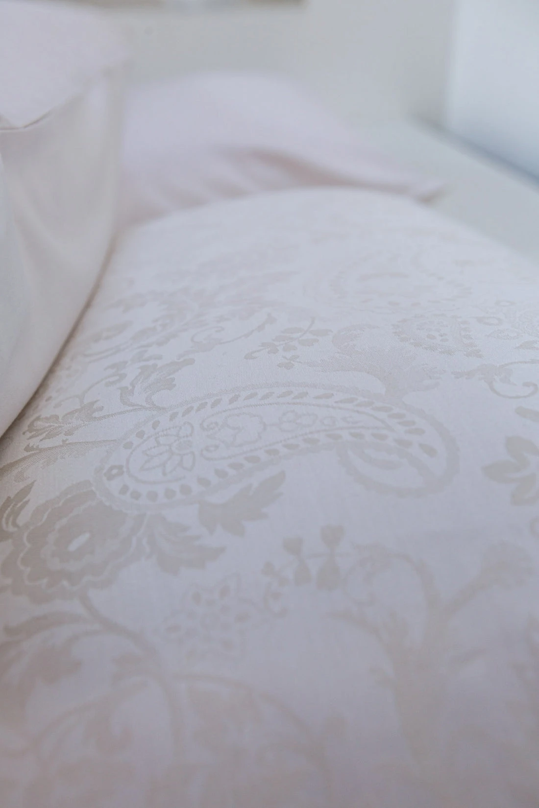 Purity Lucca off white dekbedovertrek heeft een jacquard geweven paisley patroon, waarbij de tint net iets donkerder is dan off white. De achterkant van het dekbedovertrek is effen. De kussens hebben hetzelfde paisley patroon. Purity Lucca off white dekbedovertrek van Vandyck heeft door het ingeweven patroon een chique uitstraling, die extra straalt in het zonlicht. Doordat de draden gekleurd zijn, komt het dessin nog mooier naar voren. Het is een luxe dekbedovertrek gemaakt van 100% katoensatijn hierdoor voelt het extra zacht en soepel aan. Dit dekbedovertrek is ook leuk te combineren met onze Pure 64 sprei in de kleur cream tan.