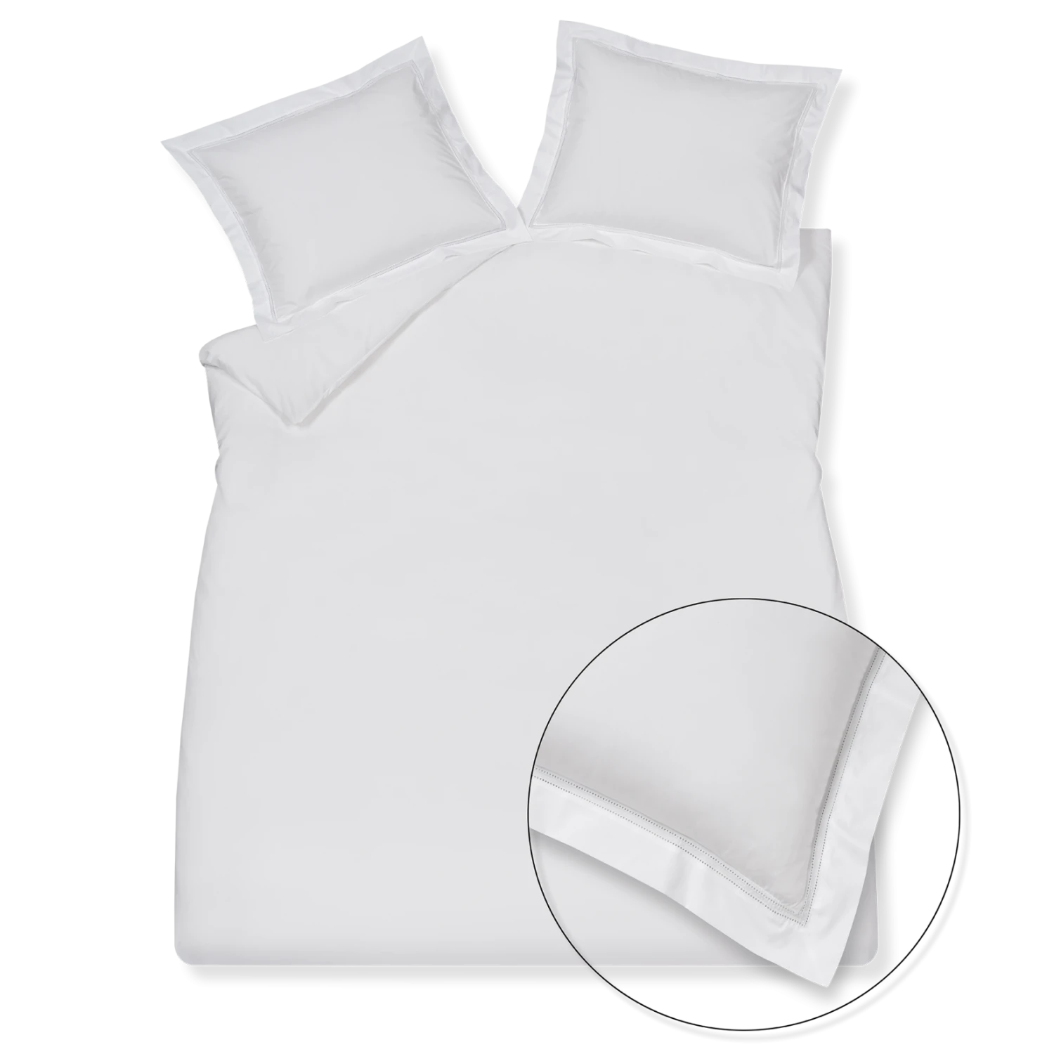 Purity Ravello white dekbedovertrek is effen wit. De achterkant van het dekbedovertrek is effen en de kussens hebben een ajour rand rondom. Purity Ravello dekbedovertrek van Vandyck is een tijdloos dekbedovertrek. Dit 100% percale katoen dekbedovertrek biedt een comfortabele slaapervaring dankzij de fijne textuur en koele eigenschap. Het speciale weefsel van fijne katoengaren zorgt voor een glad en mat oppervlak. Door een andere manier van weven, voelt het koel aan, wat zorgt voor comfortabel slapen. Ideaal voor mensen die het ’s nachts snel warm hebben. Bovendien reguleert katoen van nature de lichaamstemperatuur en absorbeert het vocht, wat resulteert in een aangenaam slaapklimaat en goede nachtrust.