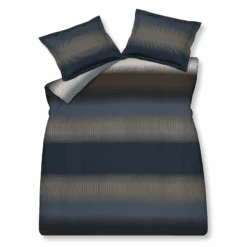Revive oceanview dekbedovertrek heeft blokjes die heel klein beginnen en veranderen in lange strepen. De kleuren gaan over van donkerblauw in taupe naar donkerbruin en beige. De achterkant van het dekbedovertrek heeft dezelfde print. De kussens zijn donkerblauw en hebben in het midden taupe blokjes die in het midden overgaan in strepen en vervolgens weer vervagen in blokjes. Revive oceanview dekbedovertrek van Vandyck lijkt door de diepe kleuren net op een donkere stille herfstavond, waar je amper nog iets kan ontwaren. Verdwijn in de nacht en sta de volgende ochtend weer energiek op. Dit 100% katoensatijnen dekbedovertrek biedt een luxueuze en comfortabele slaapervaring dankzij de zachte, soepele textuur en ademende eigenschappen. Het speciale weefsel van fijne katoengaren zorgt voor een glad oppervlak en lichte glans. Hierdoor voelt het heerlijk zacht op de huid, wat zorgt voor comfortabel slapen. Bovendien reguleert katoen van nature de lichaamstemperatuur en absorbeert het vocht, wat resulteert in een aangenaam slaapklimaat en goede nachtrust.