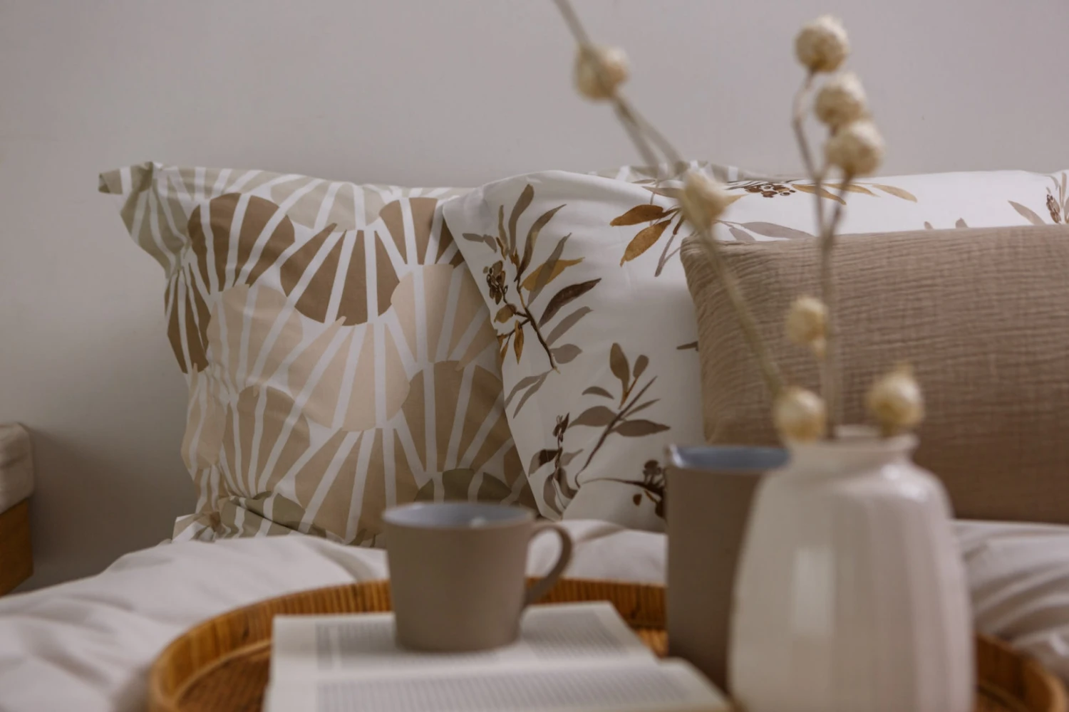 Sandy Beach latte dekbedovertrek heeft grafische vormen, die op schelpen lijken in verschillende tinten beige en bruin. De achterkant van het dekbedovertrek heeft dezelfde print, net als de kussens. Sandy Beach latte dekbedovertrek van Vandyck heeft neutrale kleuren, maar door de vormen en schuine lijnen is het toch subtiel aanwezig. Het is gemaakt van 100% katoen hierdoor is het materiaal sterker, maar voelt het toch zacht aan. Dit dekbedovertrek is ook leuk te combineren met onze Pure 68 plaid en sierkussen in de kleur linen.