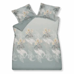 Dekbedovertrek Serena heeft een prachtige effen achtergrond met een verloop van donker naar licht. De overtrekset is bezaaid met narcissen en verschillende sierlijke ornamenten in dezelfde kleursamenstelling als de bloemen. Deze print is ook te vinden op de kussenslopen en de achterkant van het dekbedovertrek is effen.