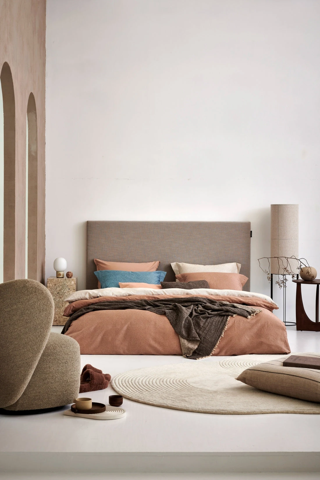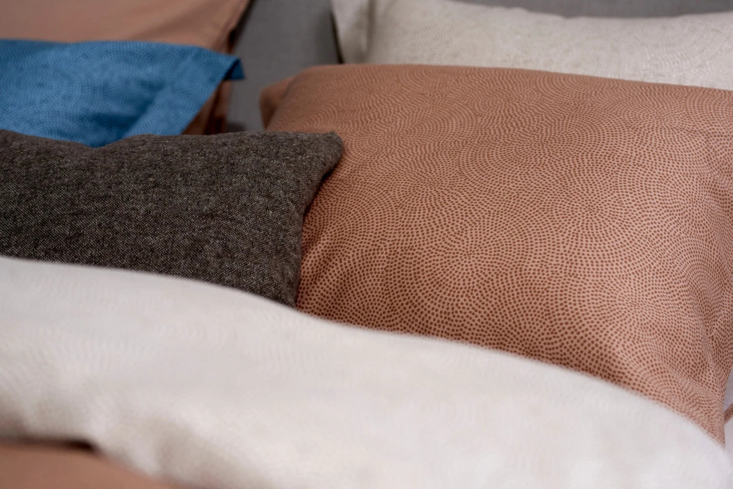 Sleepwell is een rustige maar stijlvolle, speelse toevoeging in de slaapkamer! Het dekbedovertrek is te herkennen aan de subtiele cirkelvormige print die ontstaat uit kleine stippen. De print siert beide zijden van het dekbedovertrek. Sleepwell is verkrijgbaar in drie verschillende kleuren: praline, cream tan en pearl blue. Wat leuk is aan dit dekbedovertrek is dat deze drie kleuren ook leuk zijn om samen te combineren in de slaapkamer, dit kan je terug laten komen in een mooie accessoire of met een mooi plaid; Home 95 in de kleur cream tan.