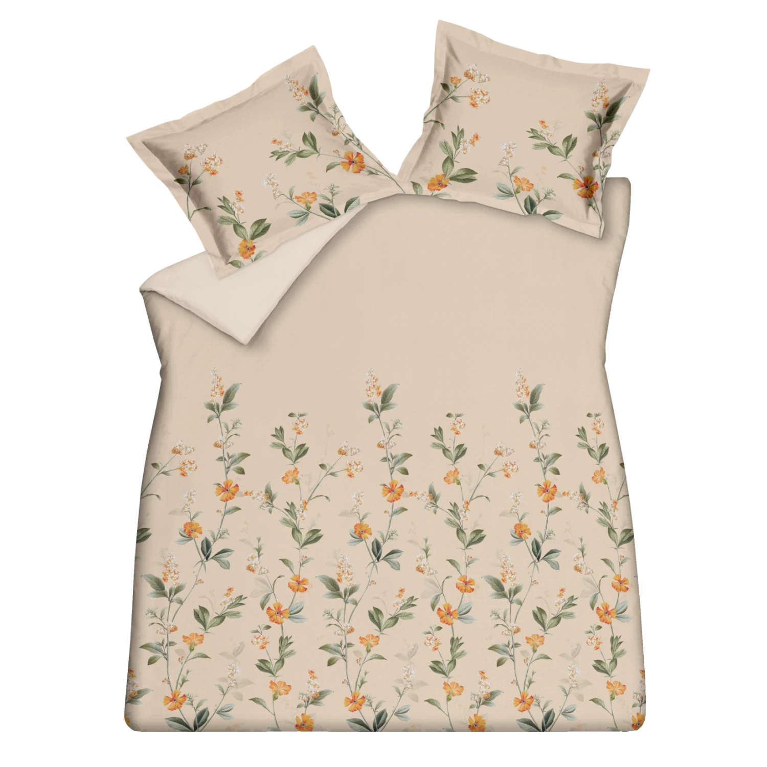 Untouched apricot blush dekbedovertrek heeft takken met grijsgroene bladeren en bloemen in oranje en wit, die tot halverwege het dekbedovertrek komen op een oranje/roze achtergrond. De achterkant van het dekbedovertrek is effen. De kussens hebben aan aan de zijkanten takken met bloemen. Door de digitale druk, komt de levensechte print helemaal tot leven. Untouched apricot blush dekbedovertrek van Vandyck geeft door de zachte kleuren een romantische uitstraling aan je slaapkamer. Het is gemaakt van 100% katoensatijn hierdoor voelt het heerlijk zacht en soepel aan.