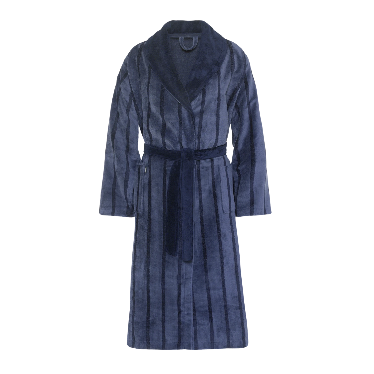 Vigo badjas is een lange badjas, geschikt voor heren. De badjas is van een comfortabel dikke, zachte teddy-achtige stof gemaakt met aan de binnenzijde een mix van bamboe en katoen. De badjas heeft een ingeweven, gestreept patroon. De Vigo badjas heeft grote insteekzakken en een omgeslagen kraag.