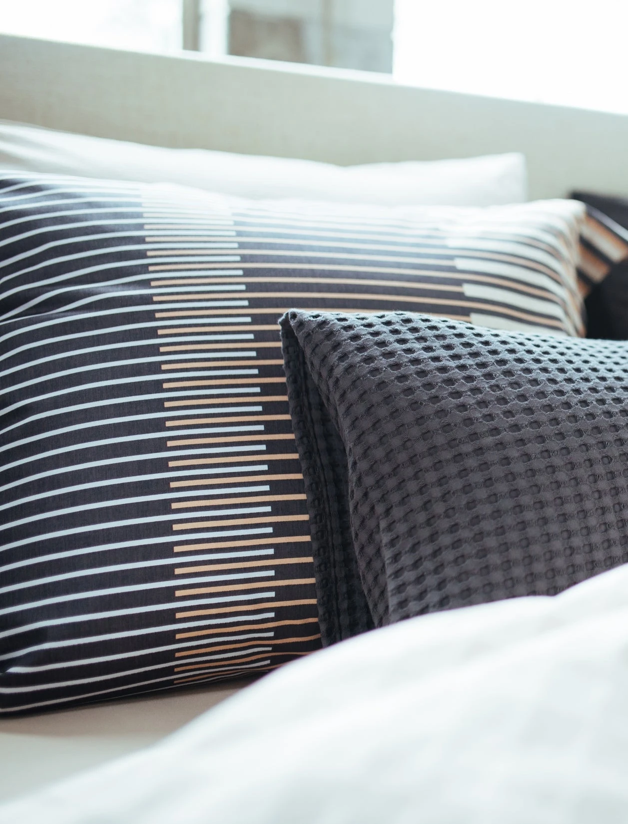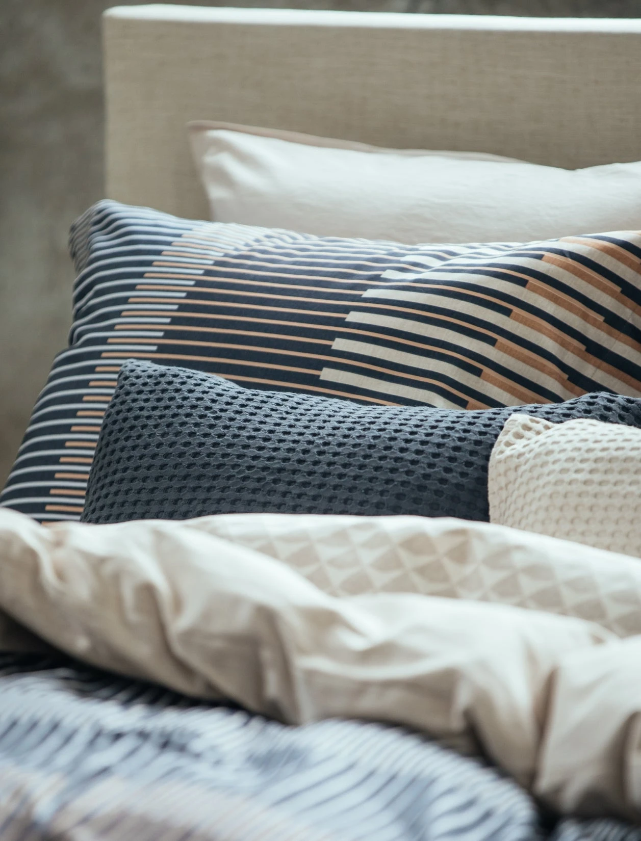 [[off black]]Wander off black dekbedovertrek heeft lijnen in verschillende lengtes en diktes varierend in grijs, bruin en beige, die in elkaar overlopen. De achterkant van het dekbedovertrek heeft dezelfde print. De kussens hebben een gedeelte van de print maar dan horizontaal. Wander off black dekbedovertrek van Vandyck heeft door de rechte lijnen een moderne strakke uitstraling en brengt rust door de warme kleuren. Combineer dit dekbedovertrekset met ons Home Pique plaid in offblack. Dit 100% katoensatijnen dekbedovertrek biedt een luxueuze en comfortabele slaapervaring dankzij de zachte, soepele textuur en ademende eigenschappen. Het speciale weefsel van fijne katoengaren zorgt voor een glad oppervlak en lichte glans. Hierdoor voelt het heerlijk zacht op de huid, wat zorgt voor comfortabel slapen. Bovendien reguleert katoen van nature de lichaamstemperatuur en absorbeert het vocht, wat resulteert in een aangenaam slaapklimaat en goede nachtrust.[[off black END]][[oceanview]]Wander oceanview dekbedovertrek heeft lijnen in verschillende lengtes en diktes varierend in blauw en terracotta, die in elkaar overlopen. De achterkant van het dekbedovertrek heeft dezelfde print. De kussens hebben een gedeelte van de print maar dan horizontaal. Wander oceanview dekbedovertrek van Vandyck heeft door de rechte lijnen een moderne strakke uitstraling en brengt rust door de warme kleuren. Dit 100% katoensatijnen dekbedovertrek biedt een luxueuze en comfortabele slaapervaring dankzij de zachte, soepele textuur en ademende eigenschappen. Het speciale weefsel van fijne katoengaren zorgt voor een glad oppervlak en lichte glans. Hierdoor voelt het heerlijk zacht op de huid, wat zorgt voor comfortabel slapen. Bovendien reguleert katoen van nature de lichaamstemperatuur en absorbeert het vocht, wat resulteert in een aangenaam slaapklimaat en goede nachtrust.[[oceanview END]]